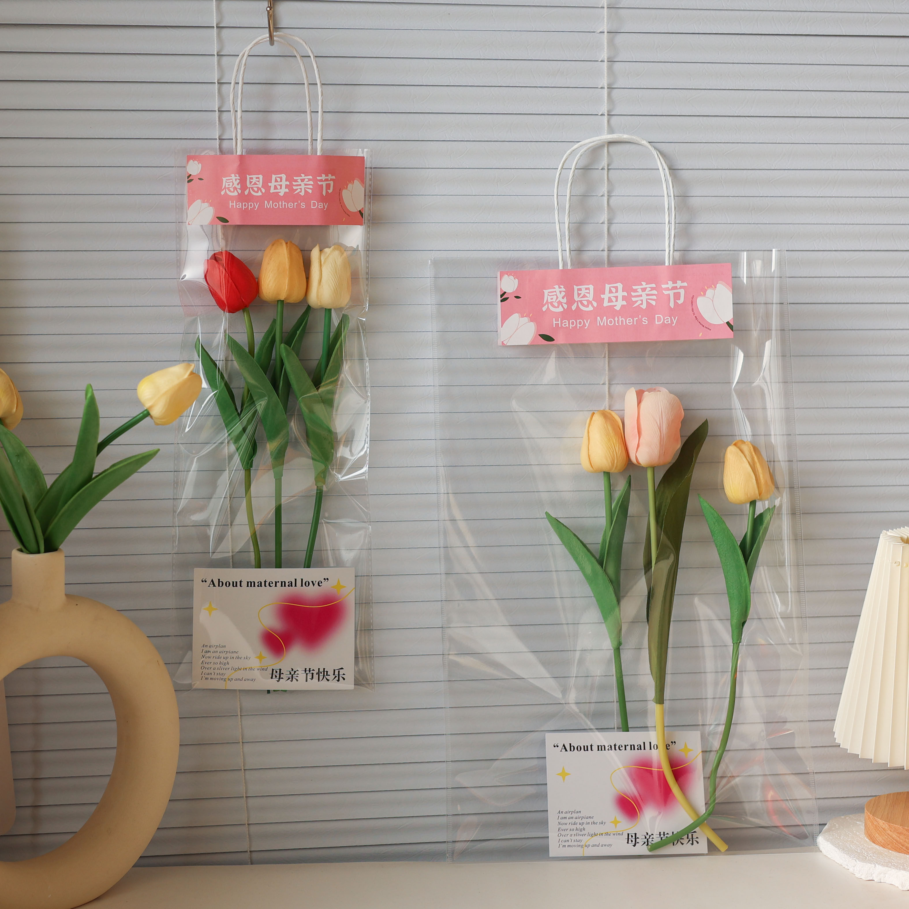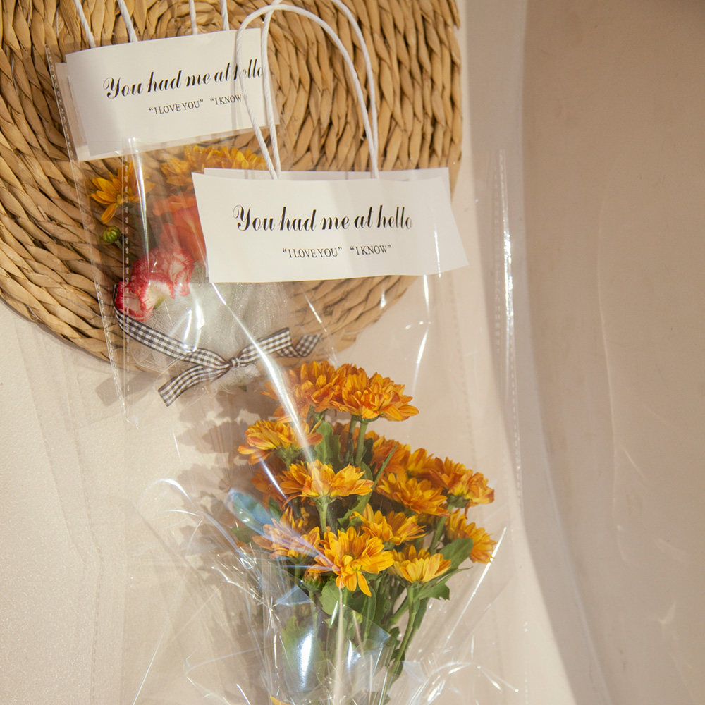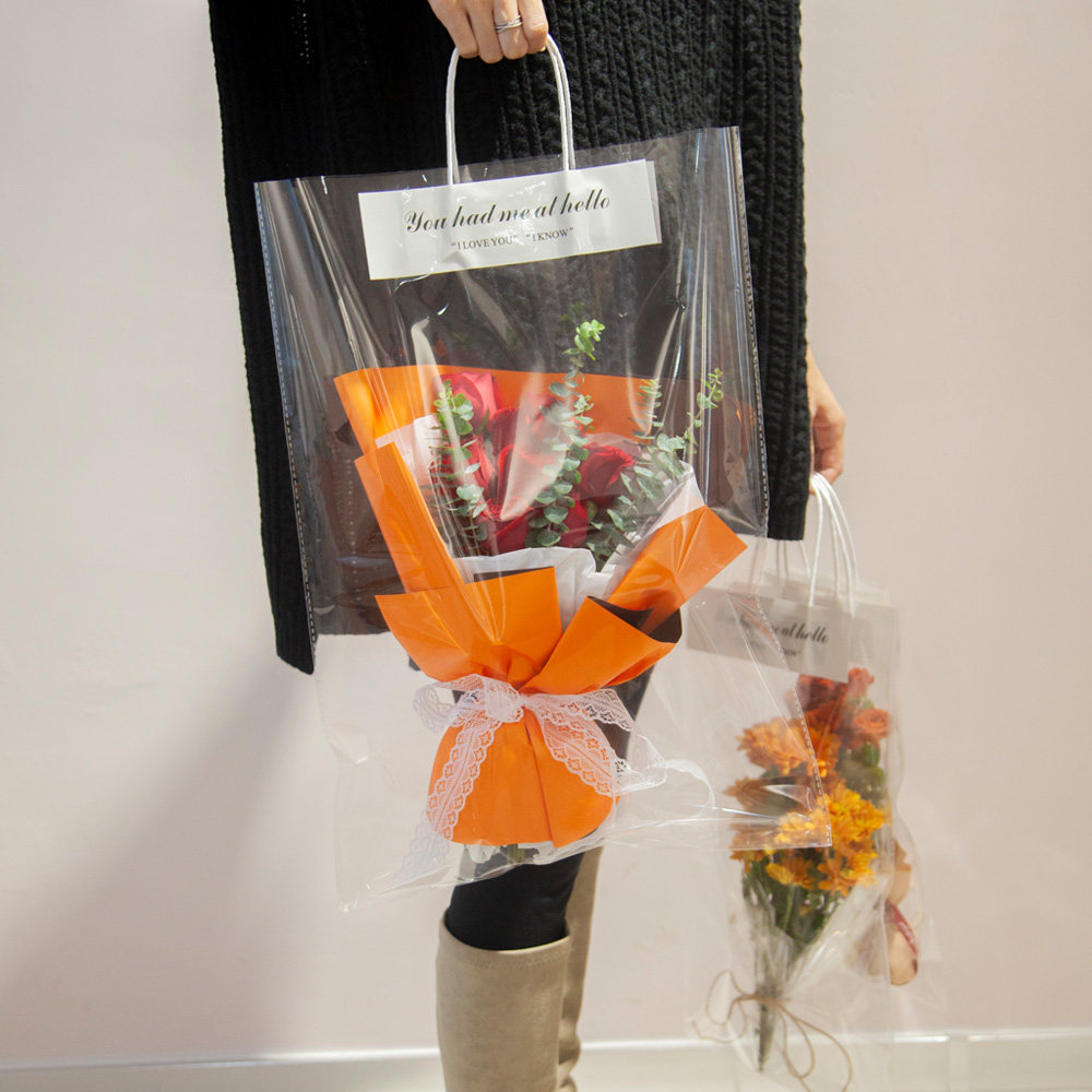 📚 教师节透明鲜花袋手提袋花束包装袋子七夕情人节单支花束包装定制