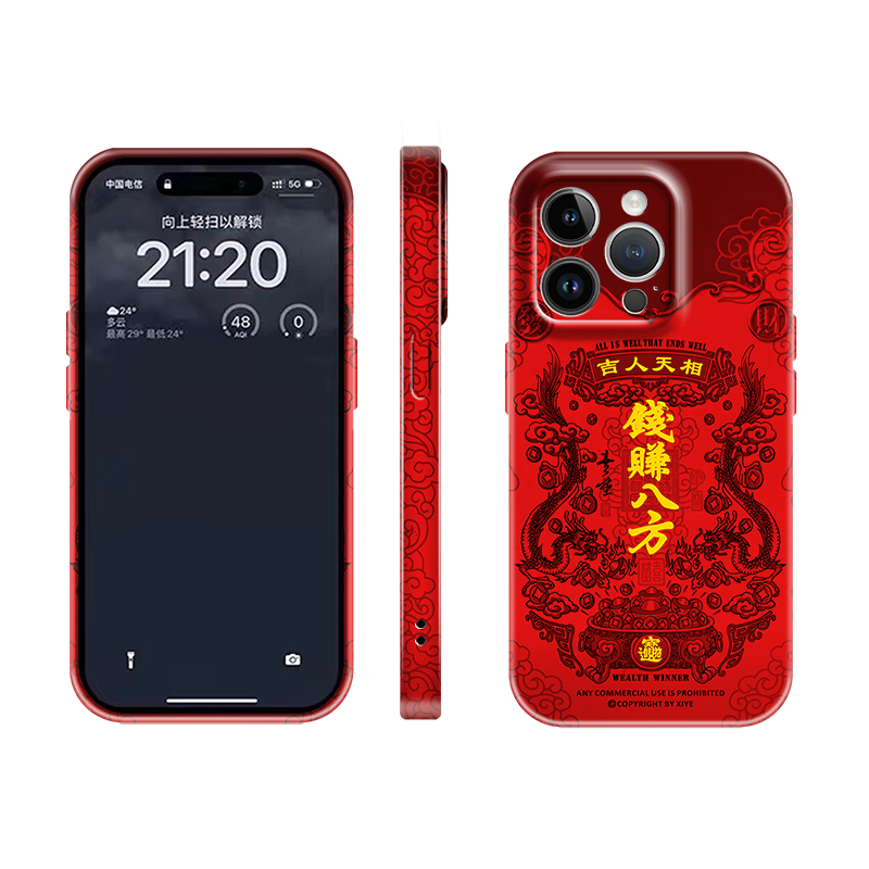 📚 新款发财钱赚八方高级感暴富苹果iphone17promax适用15pro透明14minxs13全包防摔菲林软华为小米荣耀16手机壳