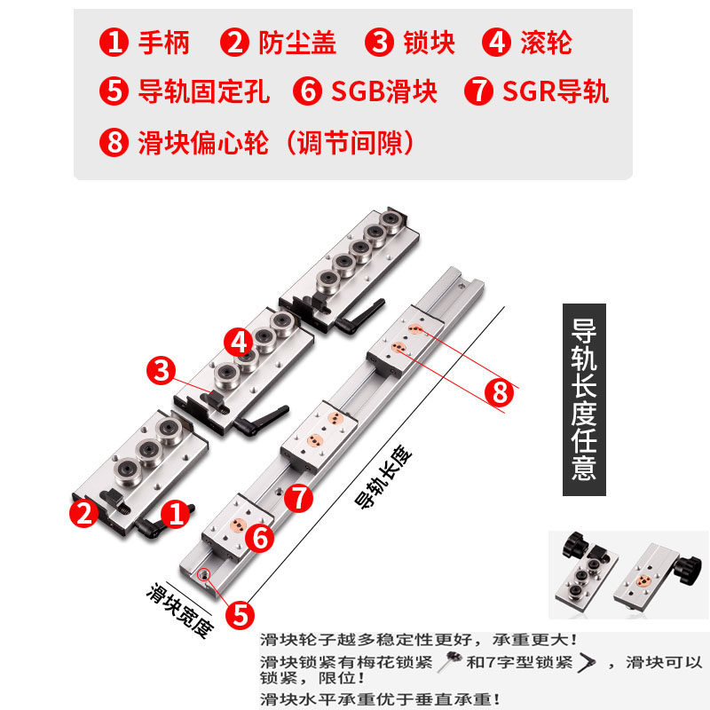 📚 精密内置双轴心直线导轨滑块双轨木工机械滑台岛台SGR滚轮滑轨