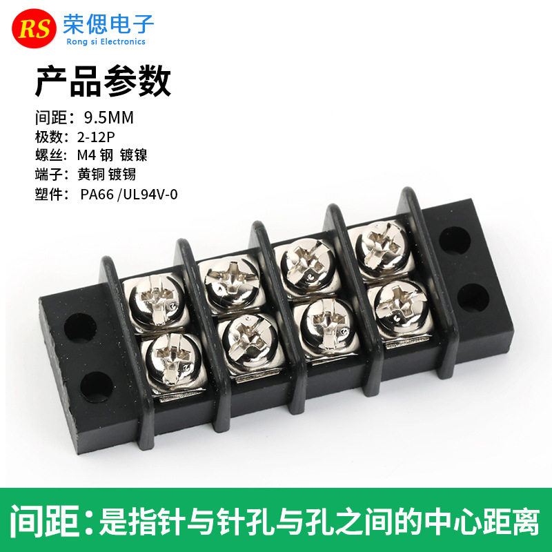 📚 免焊双排接线端子排MG49-9.5mm栅栏式2*2P-12P无轨式双排连接器