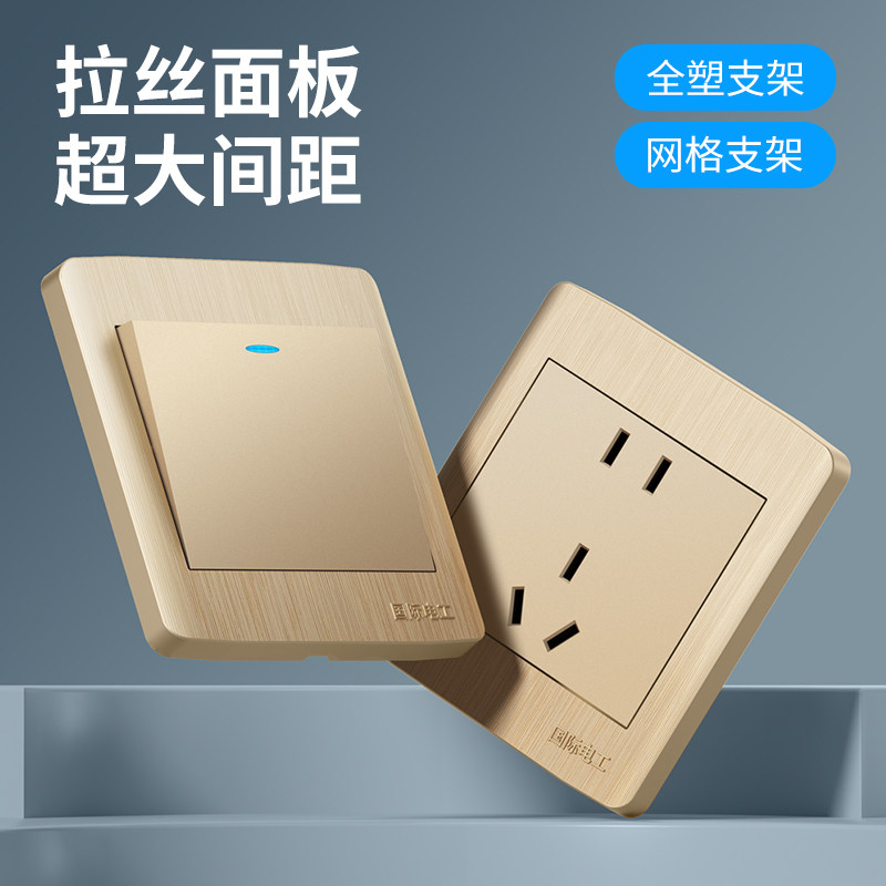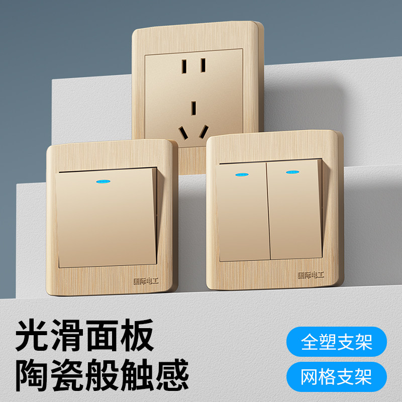 📚 国际电工家用86型金色暗装一开单双控五孔插座床头灯开关面板墙壁
