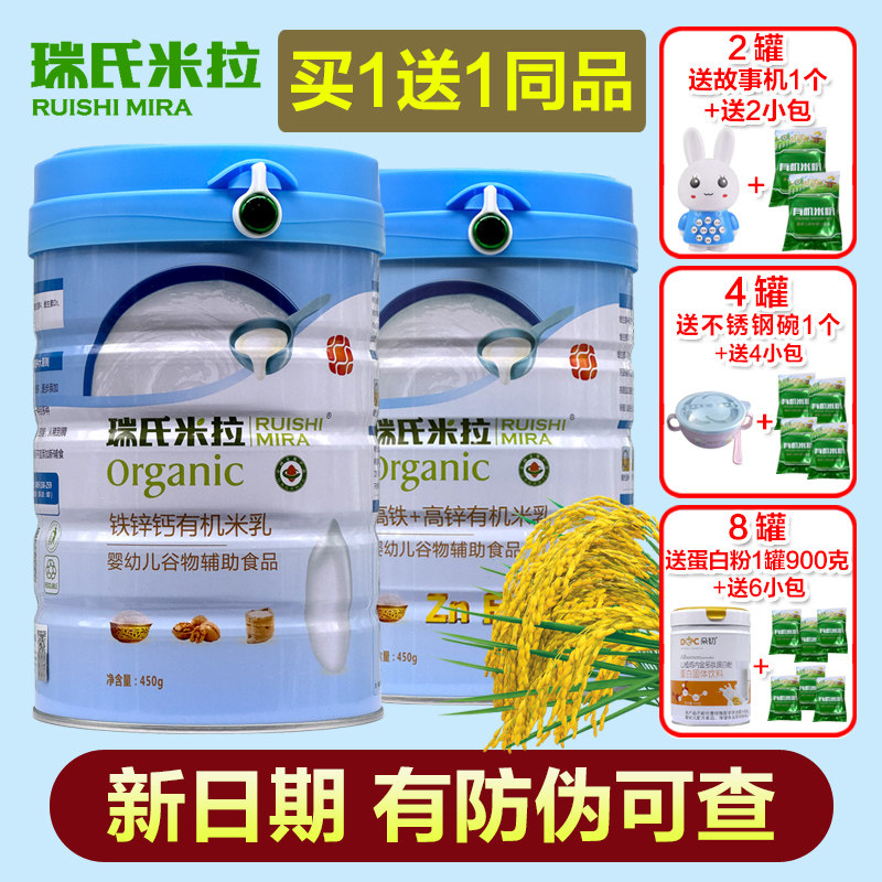 📚 【2罐】瑞氏米拉有机米乳米粉高铁高钙高锌营养米糊450克罐
