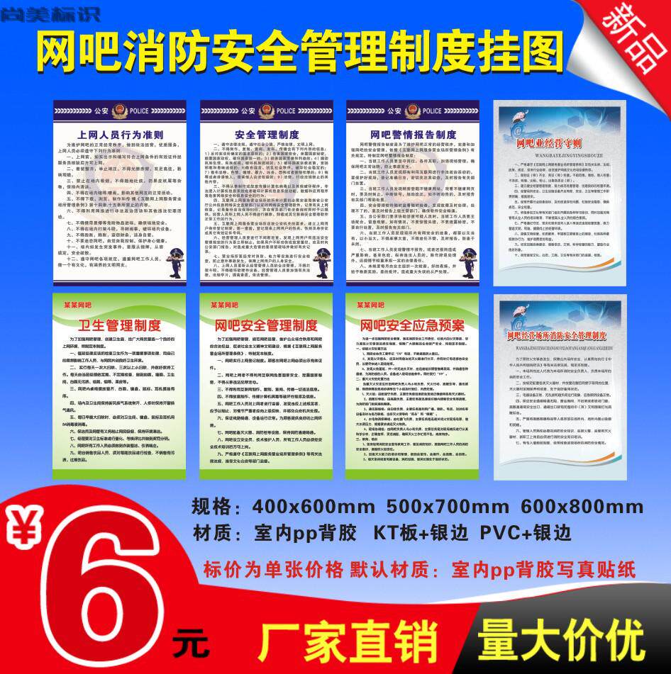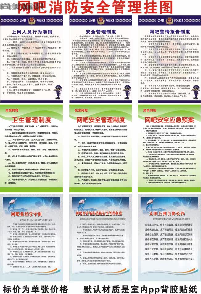 📚 网吧安全管理制度墙贴纸网络会所消防制度贴纸挂图宣传海报装饰画