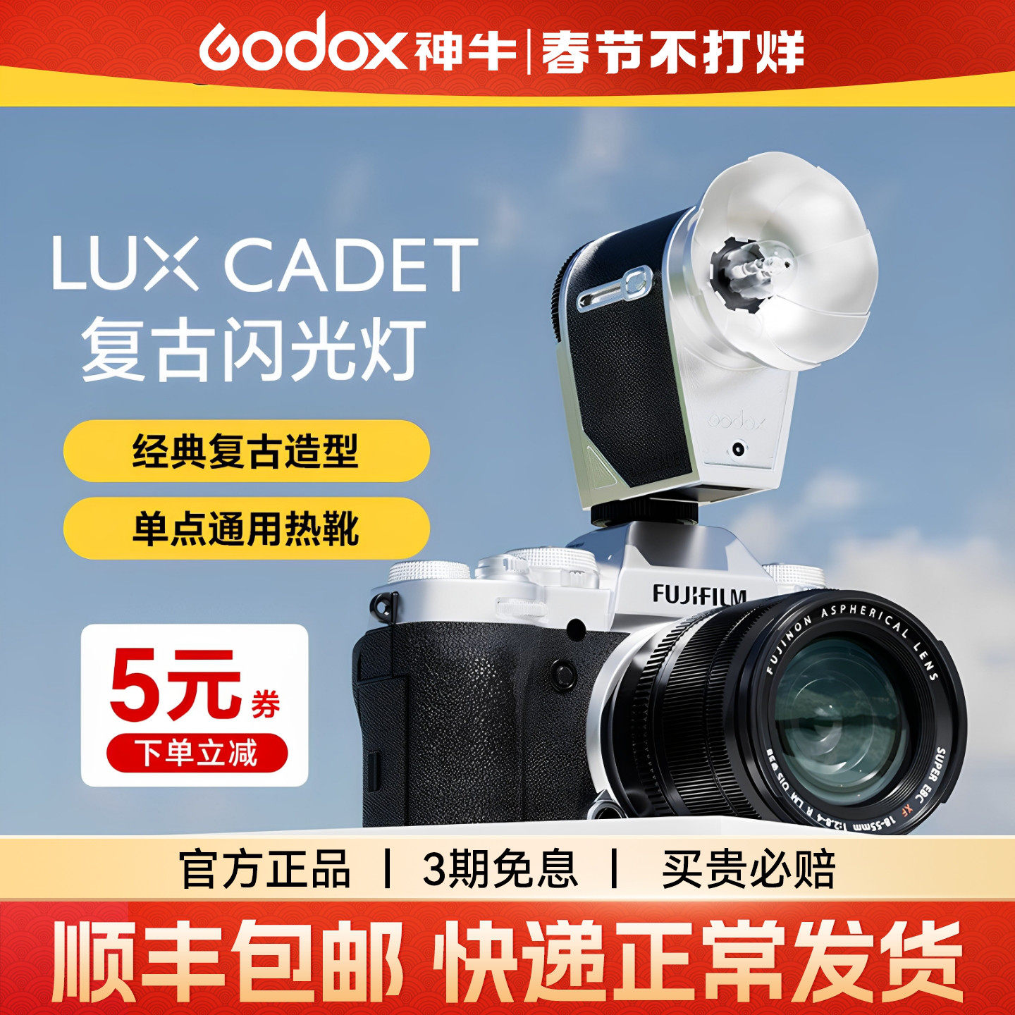 📚 Godox 神牛Lux cadet复古闪光灯微单单反相机外置灯适用于佳能尼康索尼富士X100VI/XT5旅拍外接热靴灯机顶闪