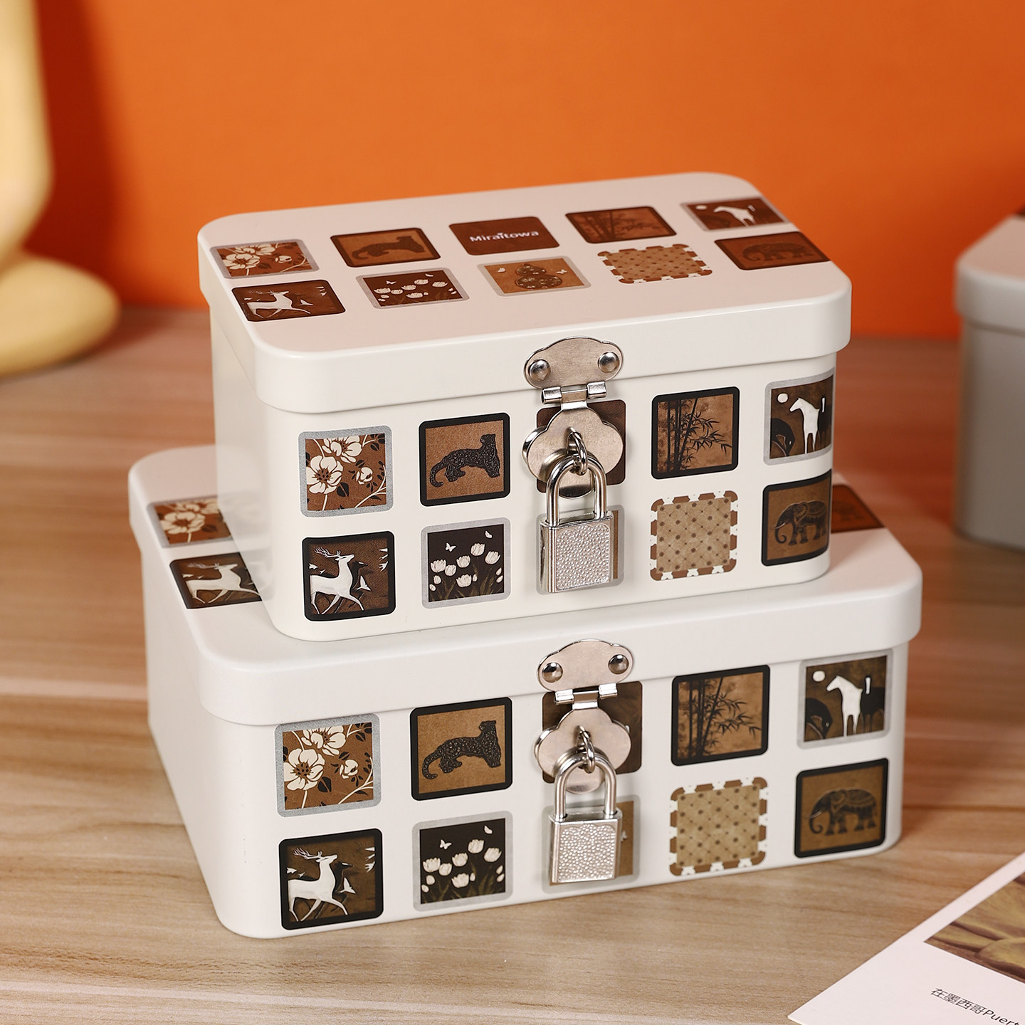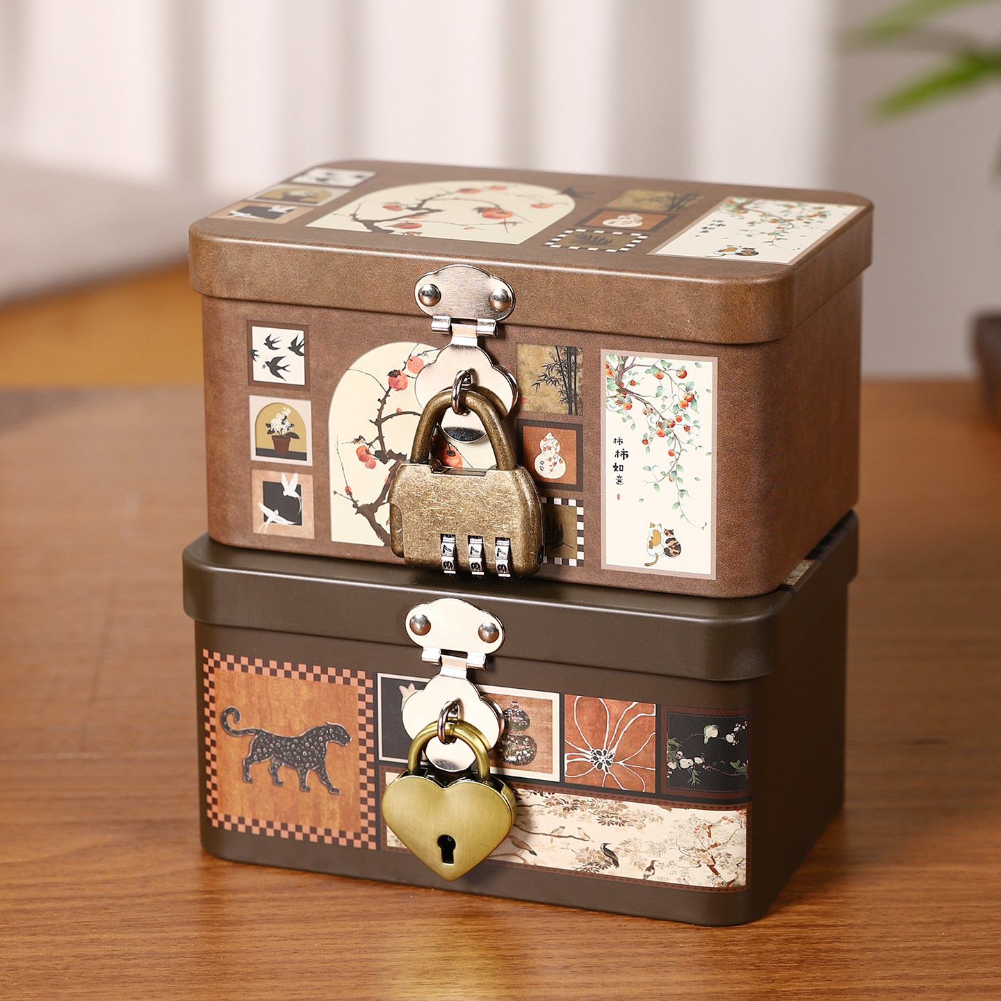 📚 收纳盒长方形带锁铁盒中古风储物盒子儿童隐私保管密码盒小型箱子