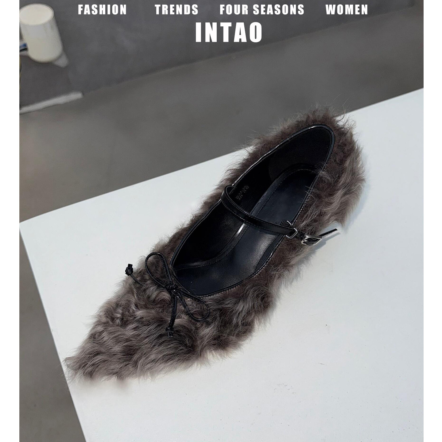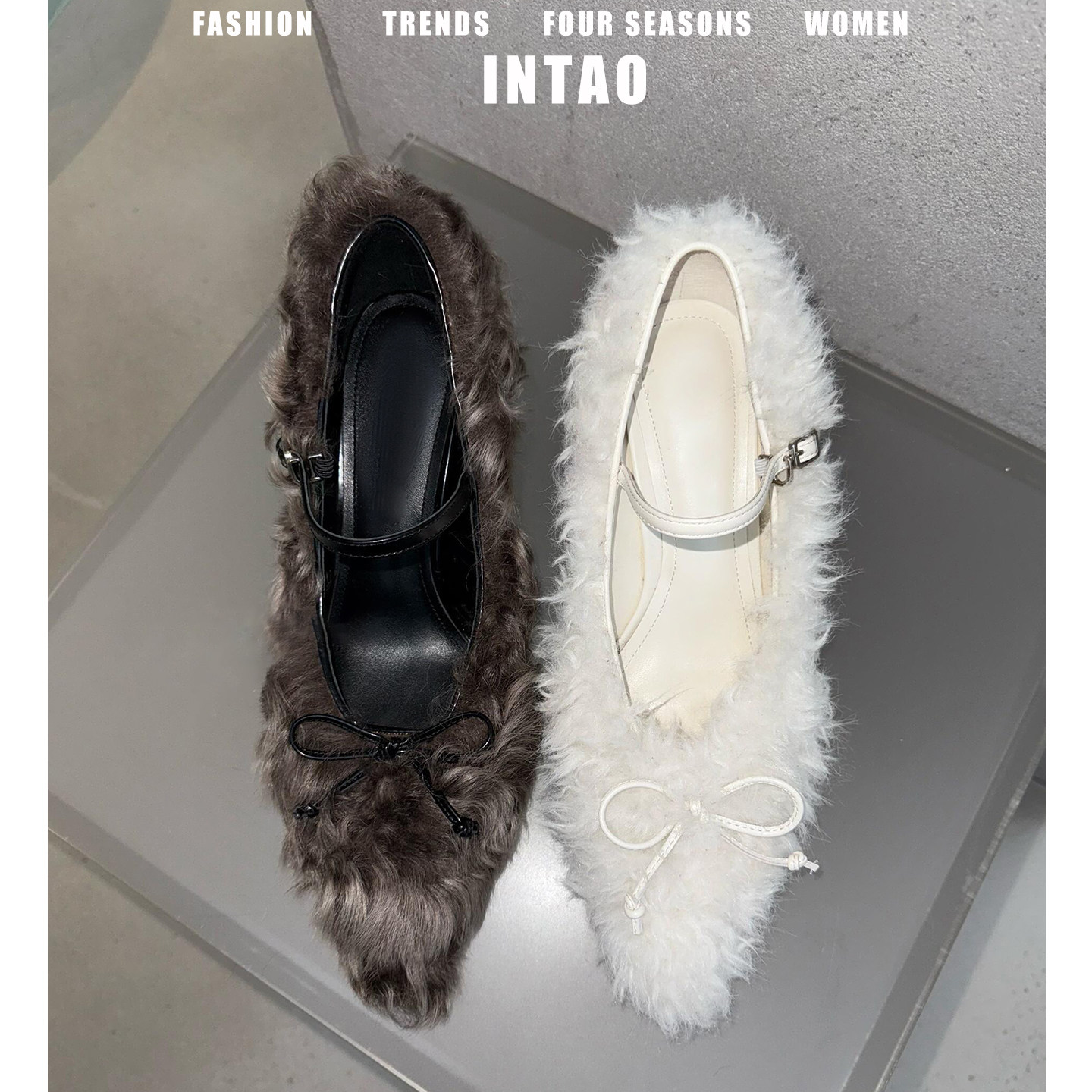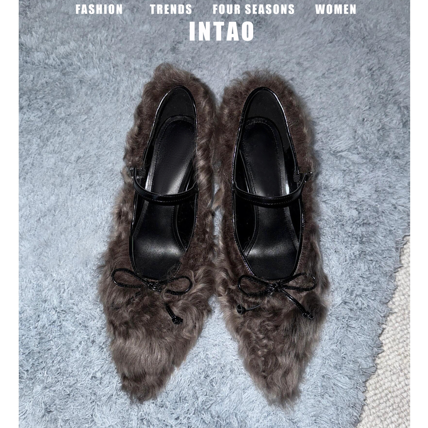 📚 高级感棕色玛丽珍毛毛鞋女秋冬2025新款尖头坡跟高跟鞋蝴蝶结单鞋