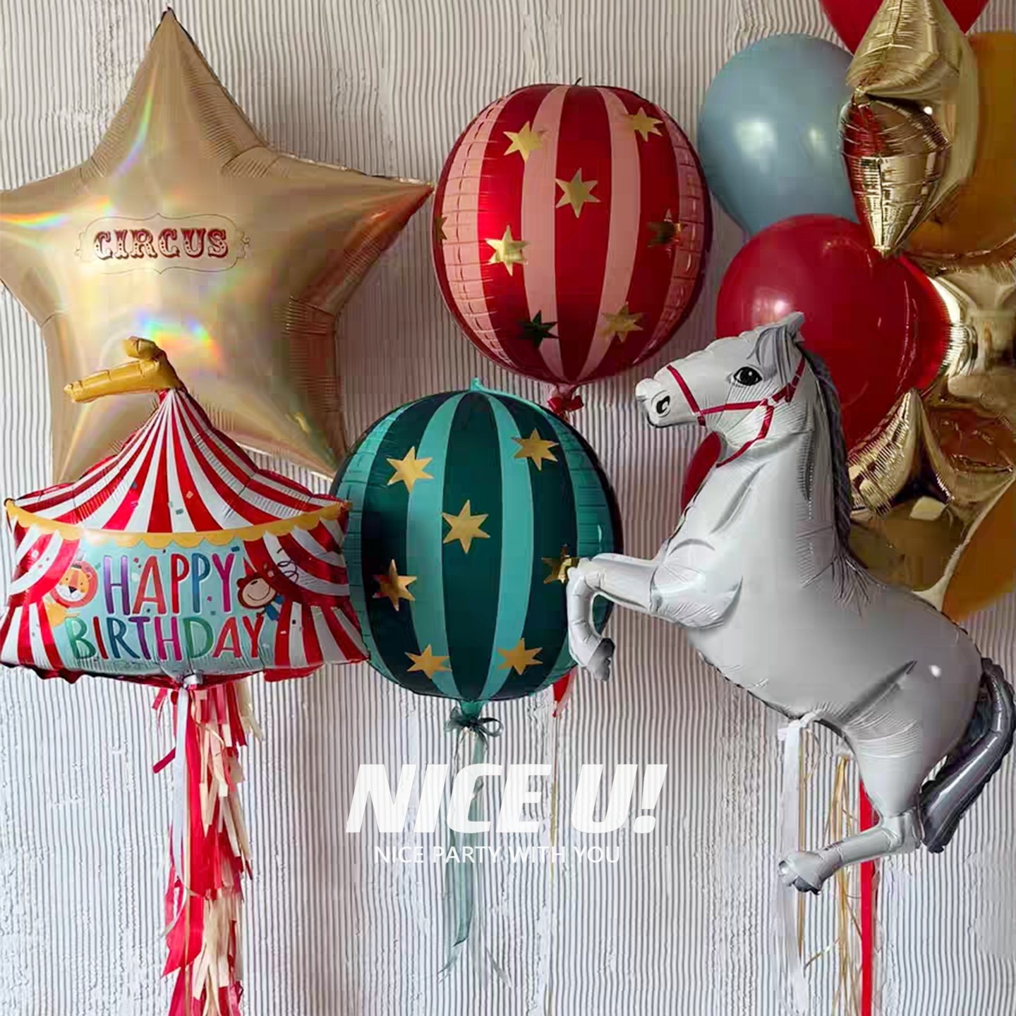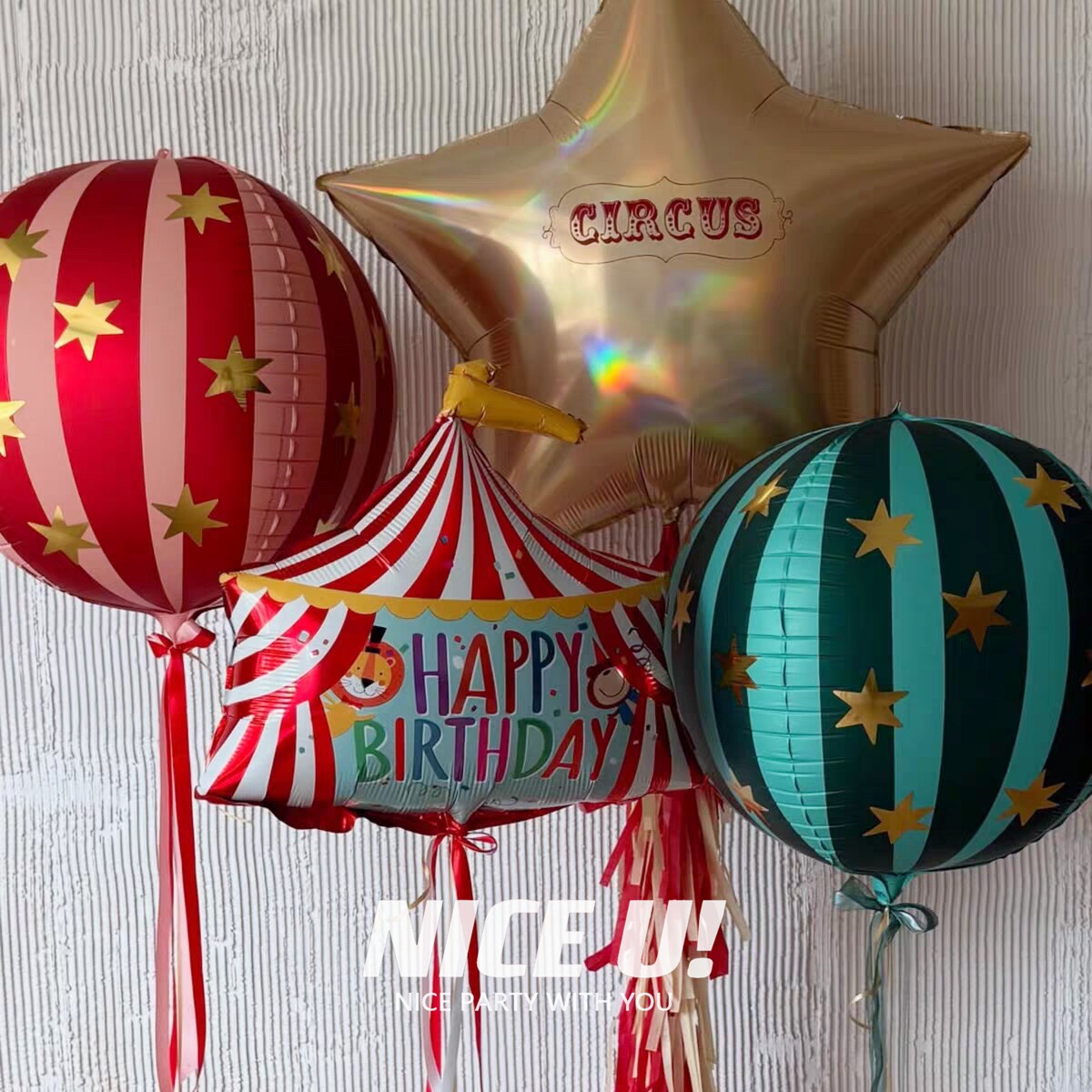 📚 马戏团主题派对气球立体条纹圆形卡通动物铝膜气球儿童生日装饰