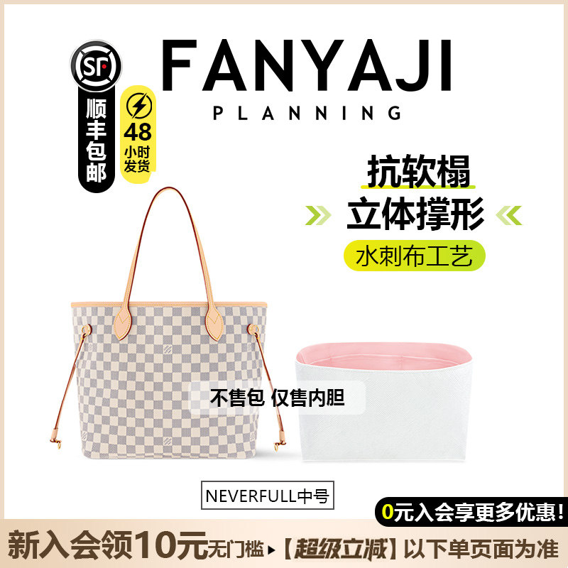 📚 现货FANYAJI适用Lv Neverfull中号白棋盘芭蕾粉杜邦纸内胆包防盗