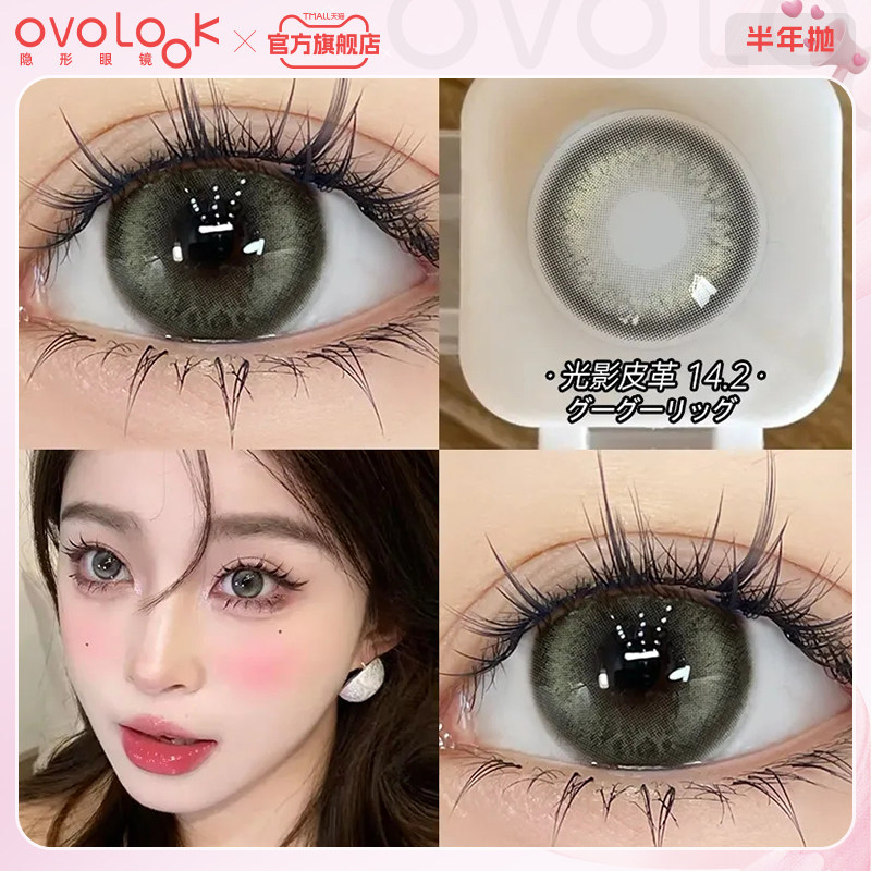 📚 OVOLOOK灰绿色美瞳半年抛混血款小直径光影皮革隐形眼镜旗舰店女F