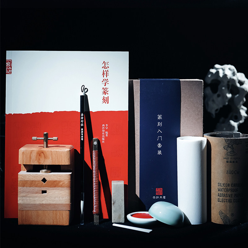 📚 西泠印社 篆刻入门套装初学者含篆刻刀榉木印床印泥篆刻笔砂皮青