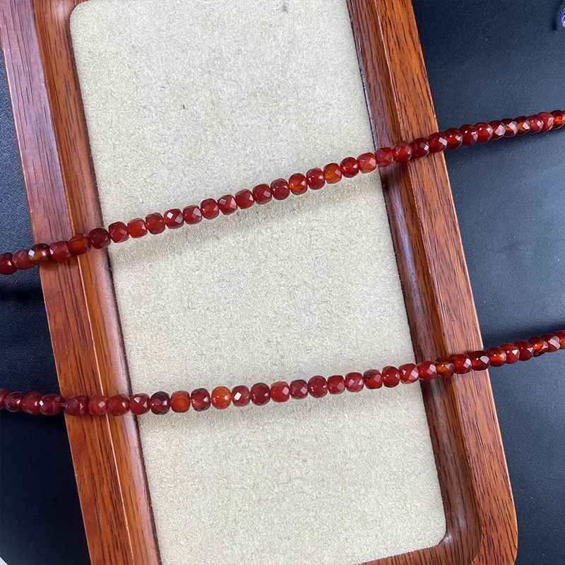 📚 4.6mm方糖切面天然红润玛瑙45颗半成品手链项链DIY饰品配件
