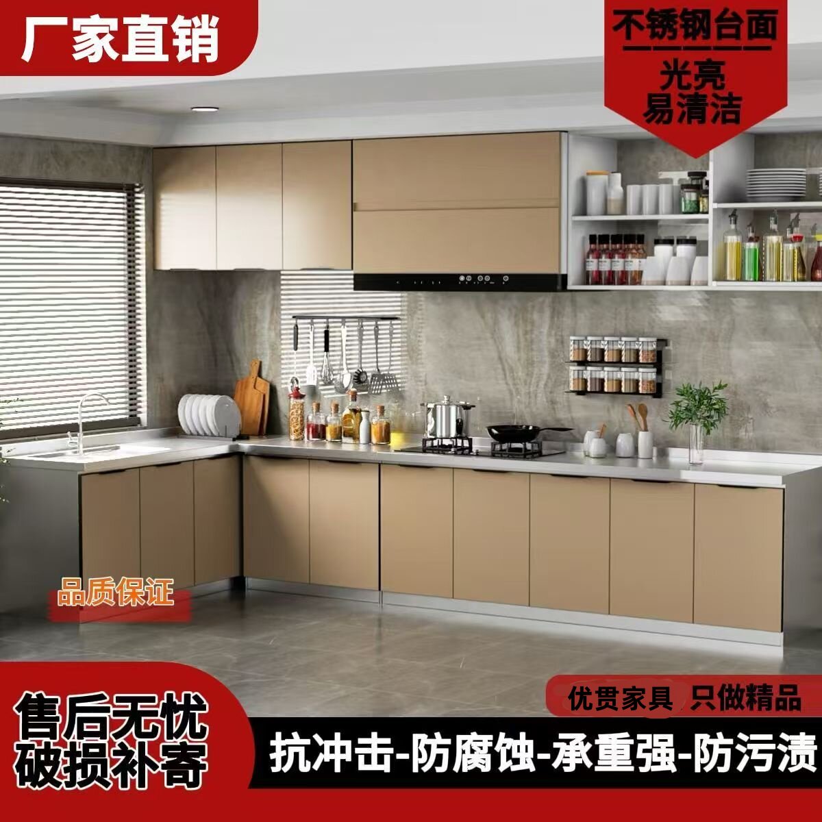 📚 不锈钢厨房橱柜一体灶台农村操作台租房经济型简晃家用餐边柜碗柜