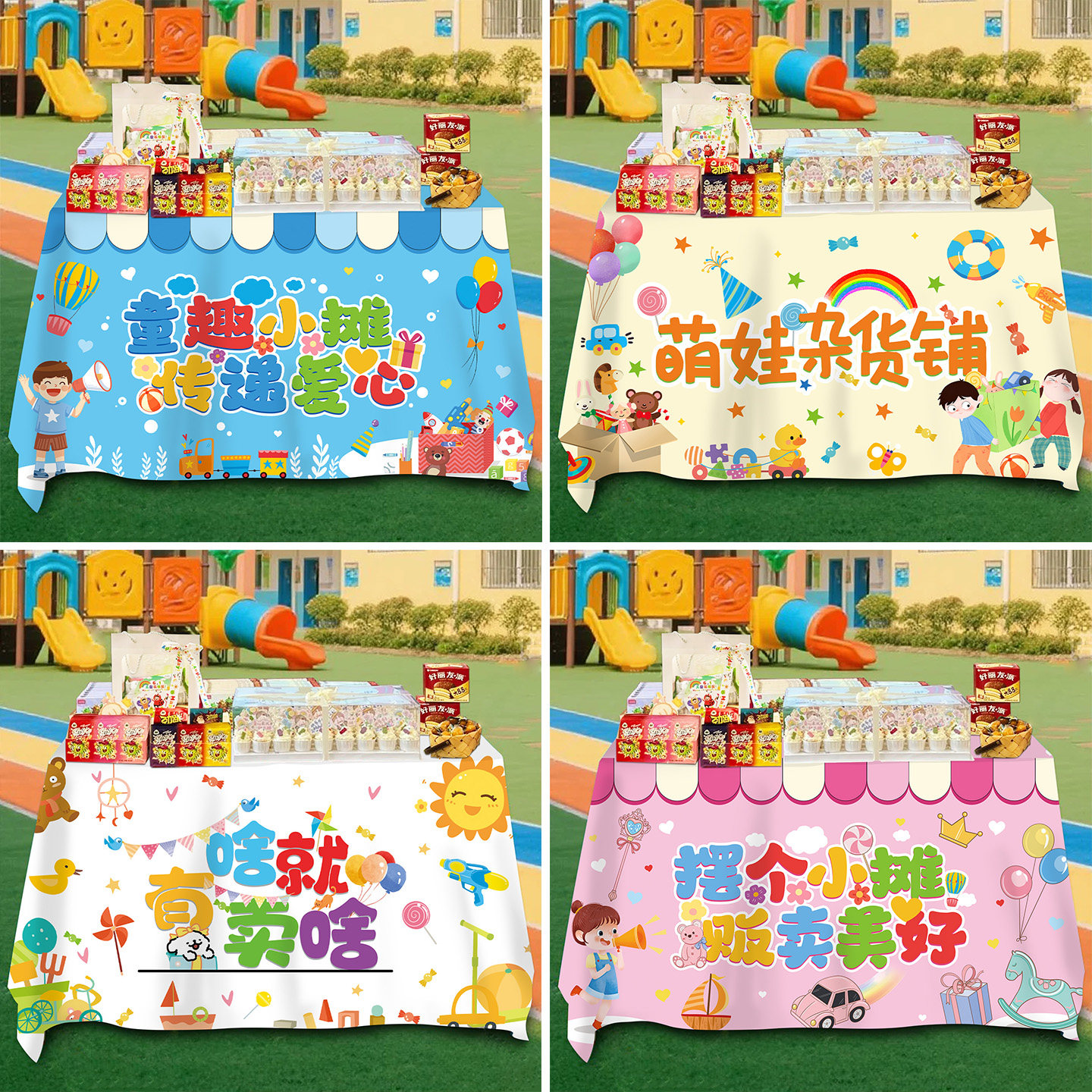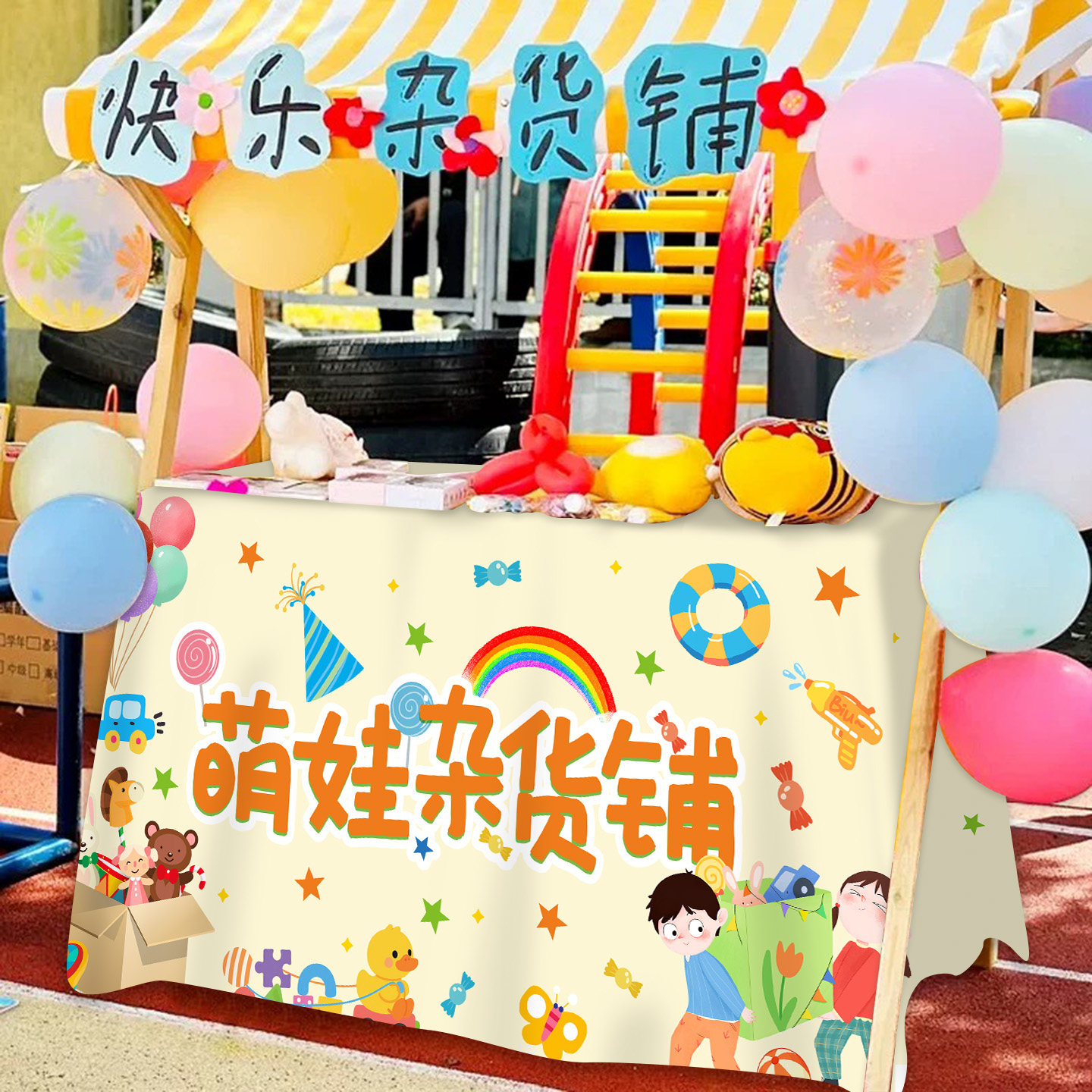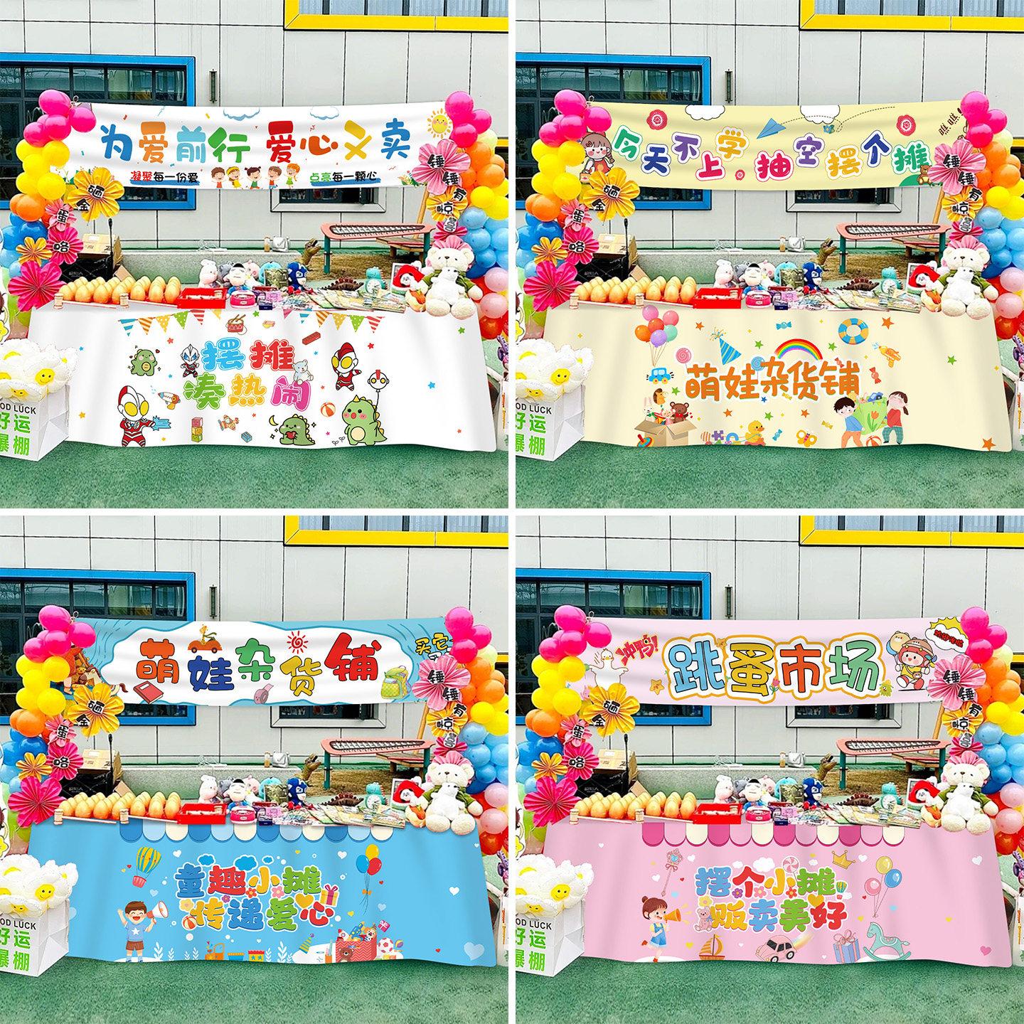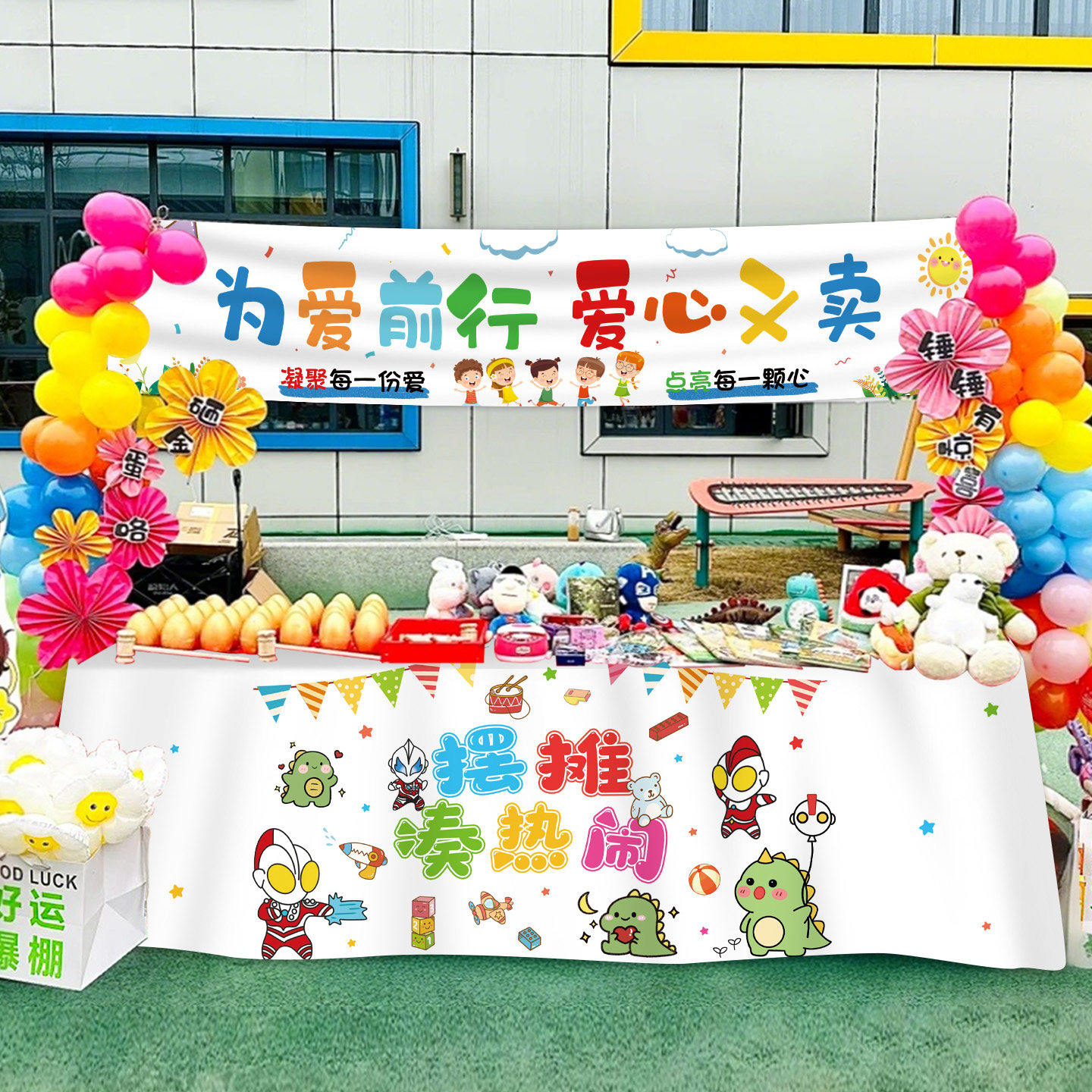 📚 幼儿园儿童小学爱心义卖桌布置跳蚤市场摆摊位广告牌氛围场景装饰