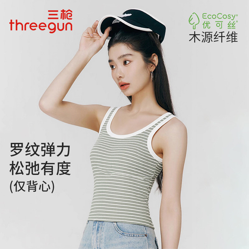 📚 三枪背心女带胸垫一体式无钢圈条纹美背打底上衣内搭braT30003