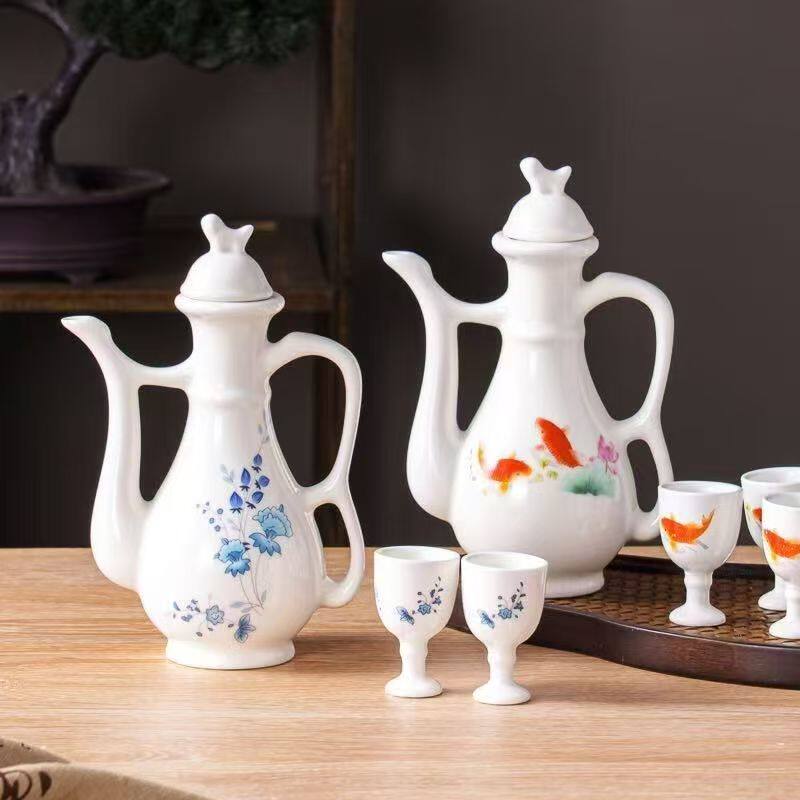 📚 创意酒水壶酒纯白色家用中式仿古酒壶陶瓷酒具 半斤八两白酒酒杯