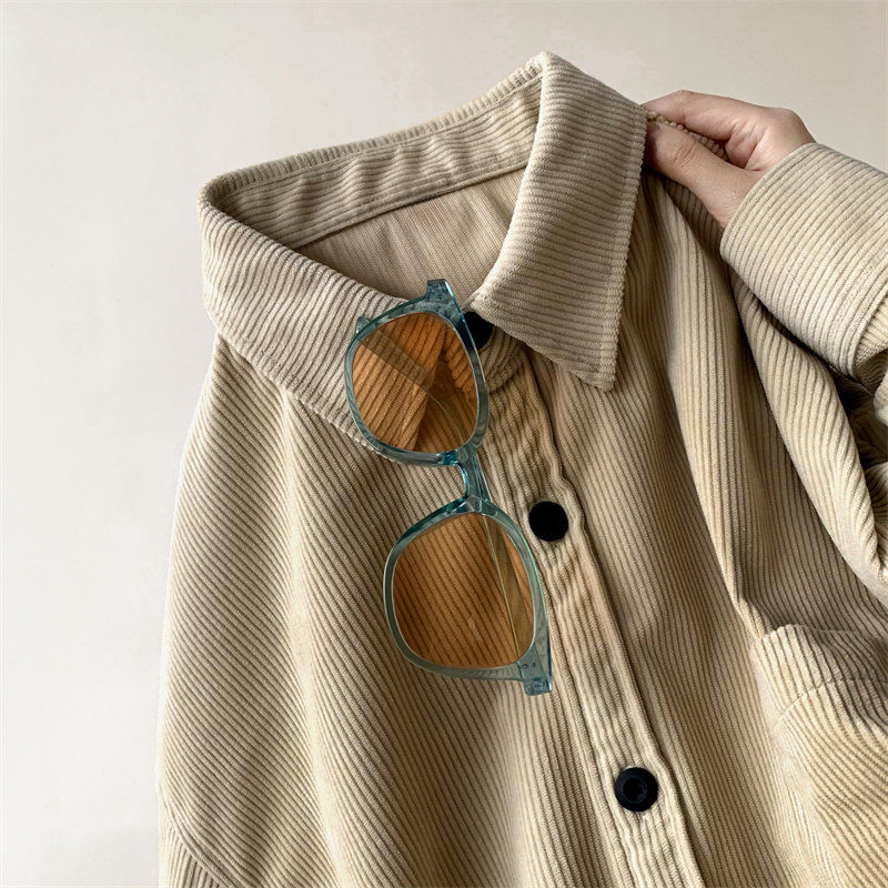 📚 BDLS工作室文艺男女店港风情侣款情侣款高品质灯芯绒休闲长袖衬衫