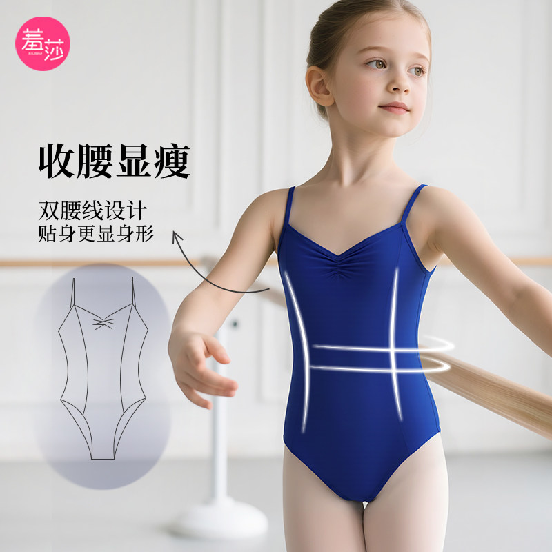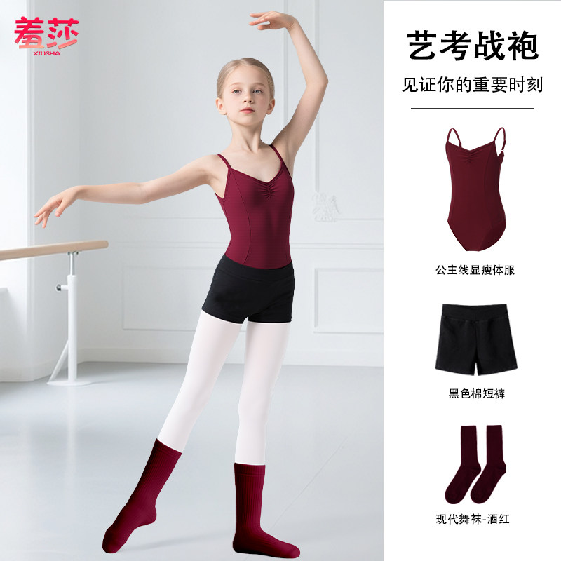 📚 儿童专业艺考吊带高跨显瘦带胸垫练功服女童秋冬红色舞蹈服形体服