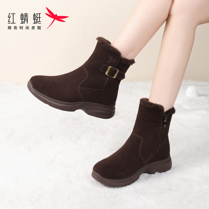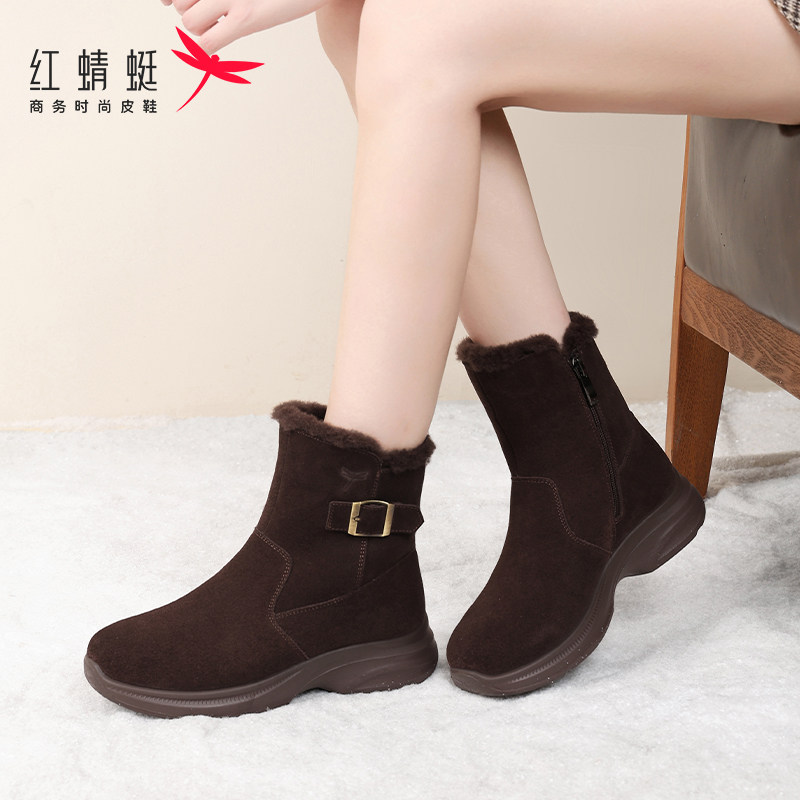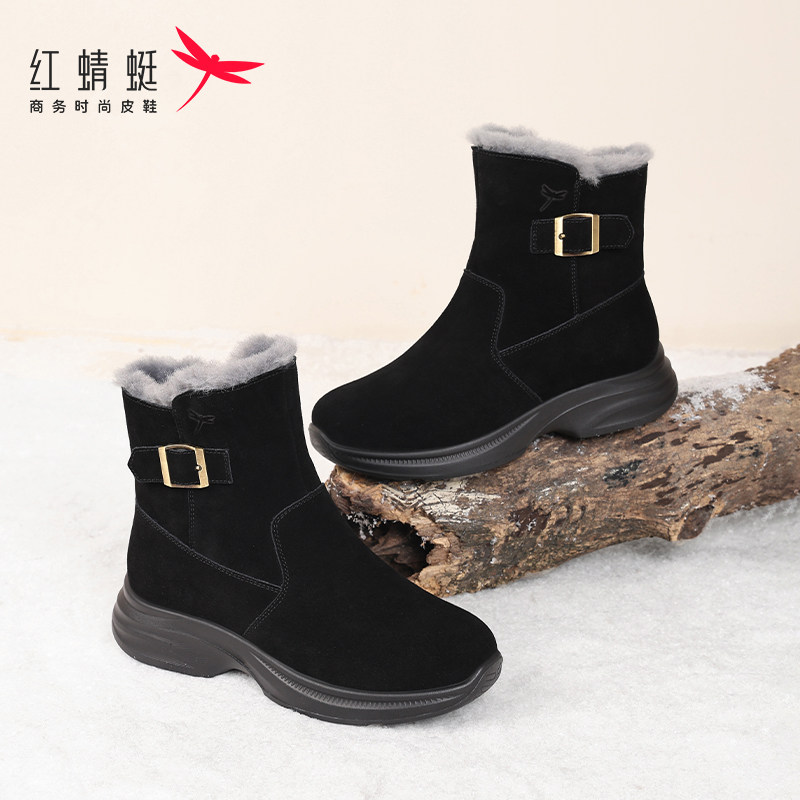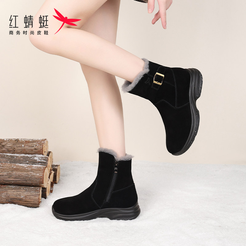 📚 红蜻蜓女鞋防滑毛毛鞋雪地靴女款新款冬季加绒保暖加厚棉鞋东北黑