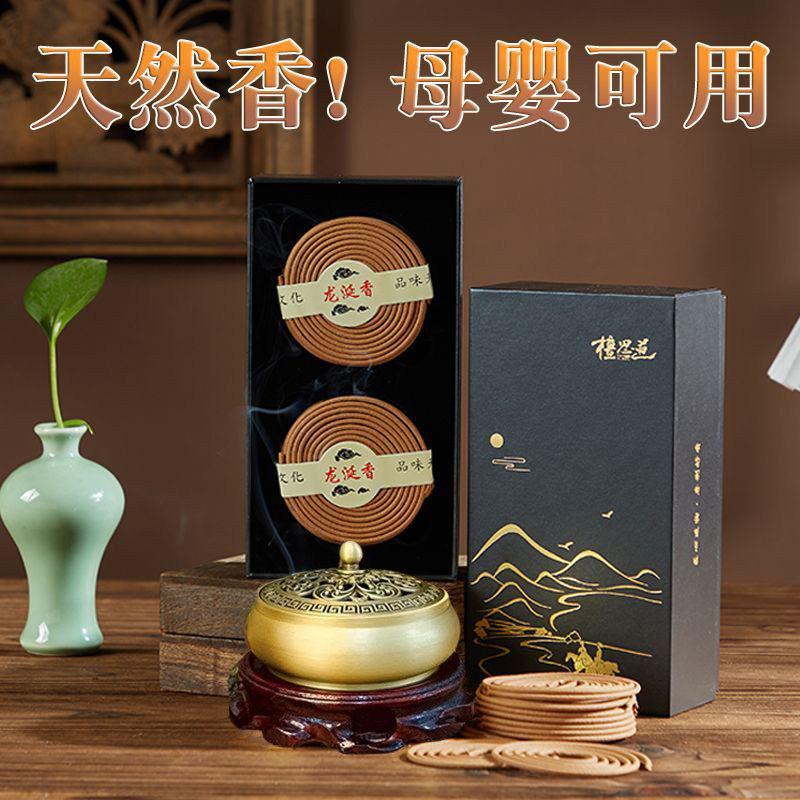 📚 龙涎香盘香办公室天然檀香沉香家用熏香安神卧室内持久香薰炉摆件