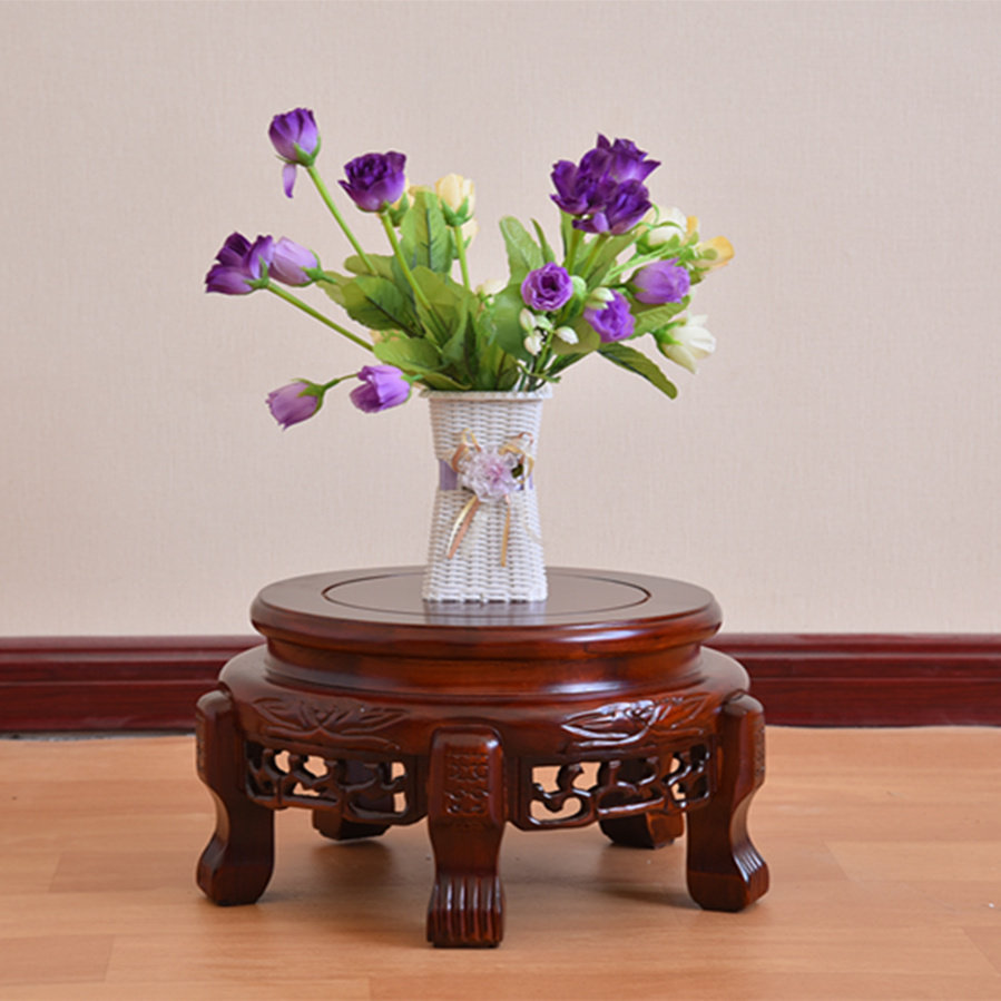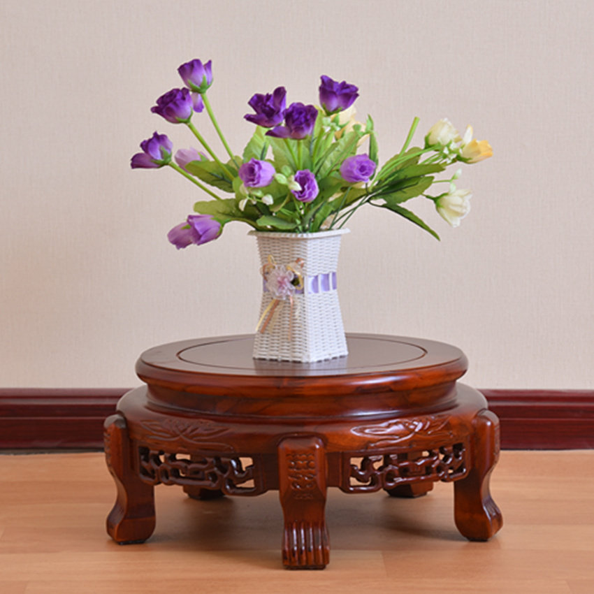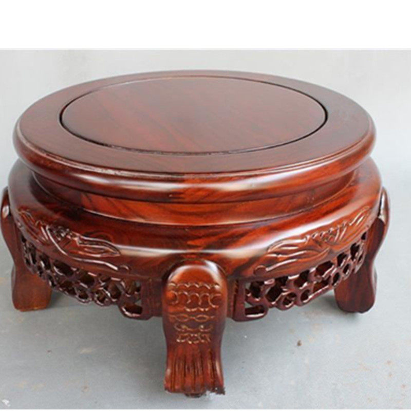 📚 实木底座花架摆件红木奇石头木制花瓶木头托架鱼缸盆景圆形矮架子