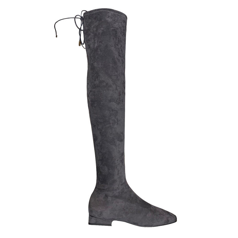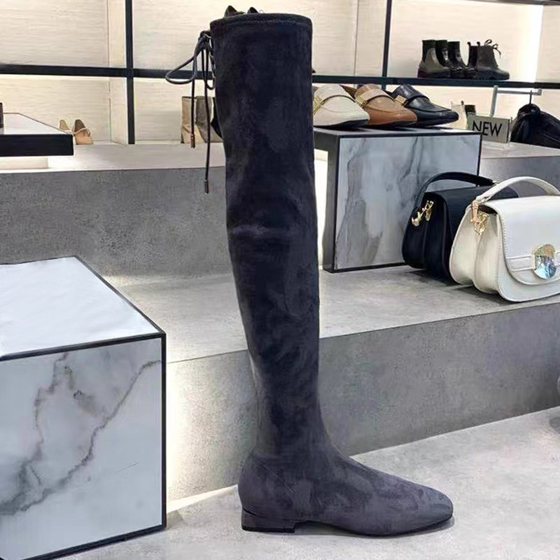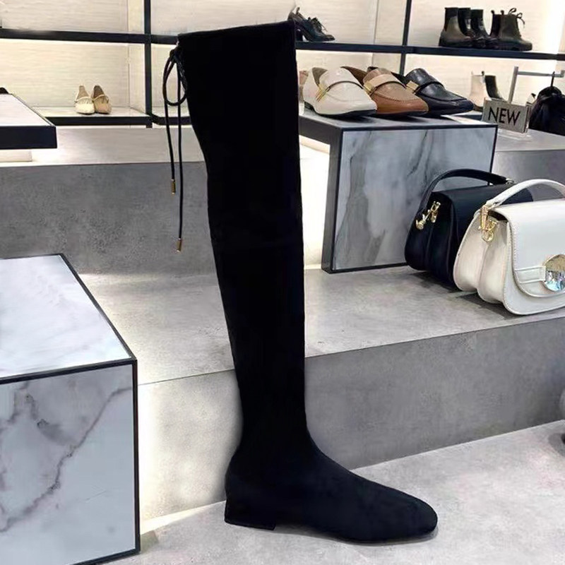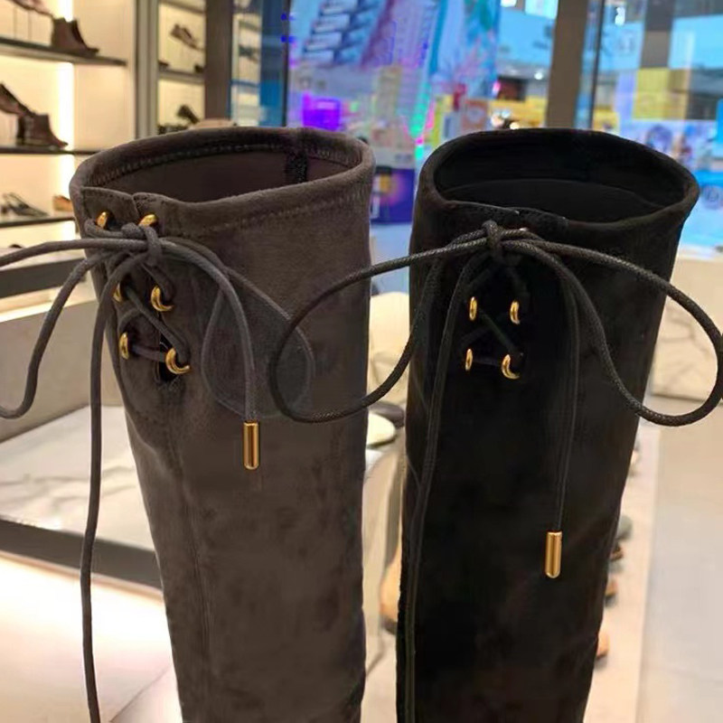 📚 2024新款高靴90900086弹力靴高筒低跟方头过膝长筒绑带瘦瘦靴女鞋