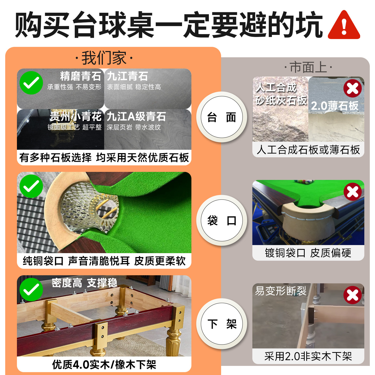 📚 乔款台球桌室内家用商用中八标准型九尺球桌青石板钢库桌球台案子