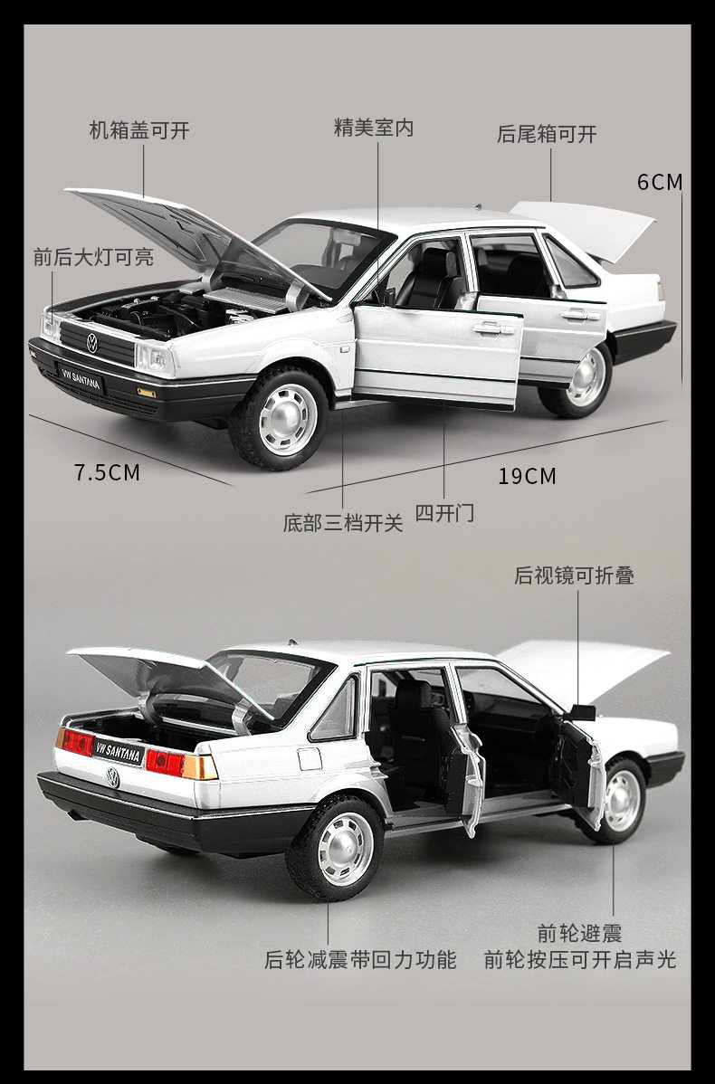 📚 大众桑塔纳2000汽车模型儿童仿真合金玩具车摆件3000飞驰人生2