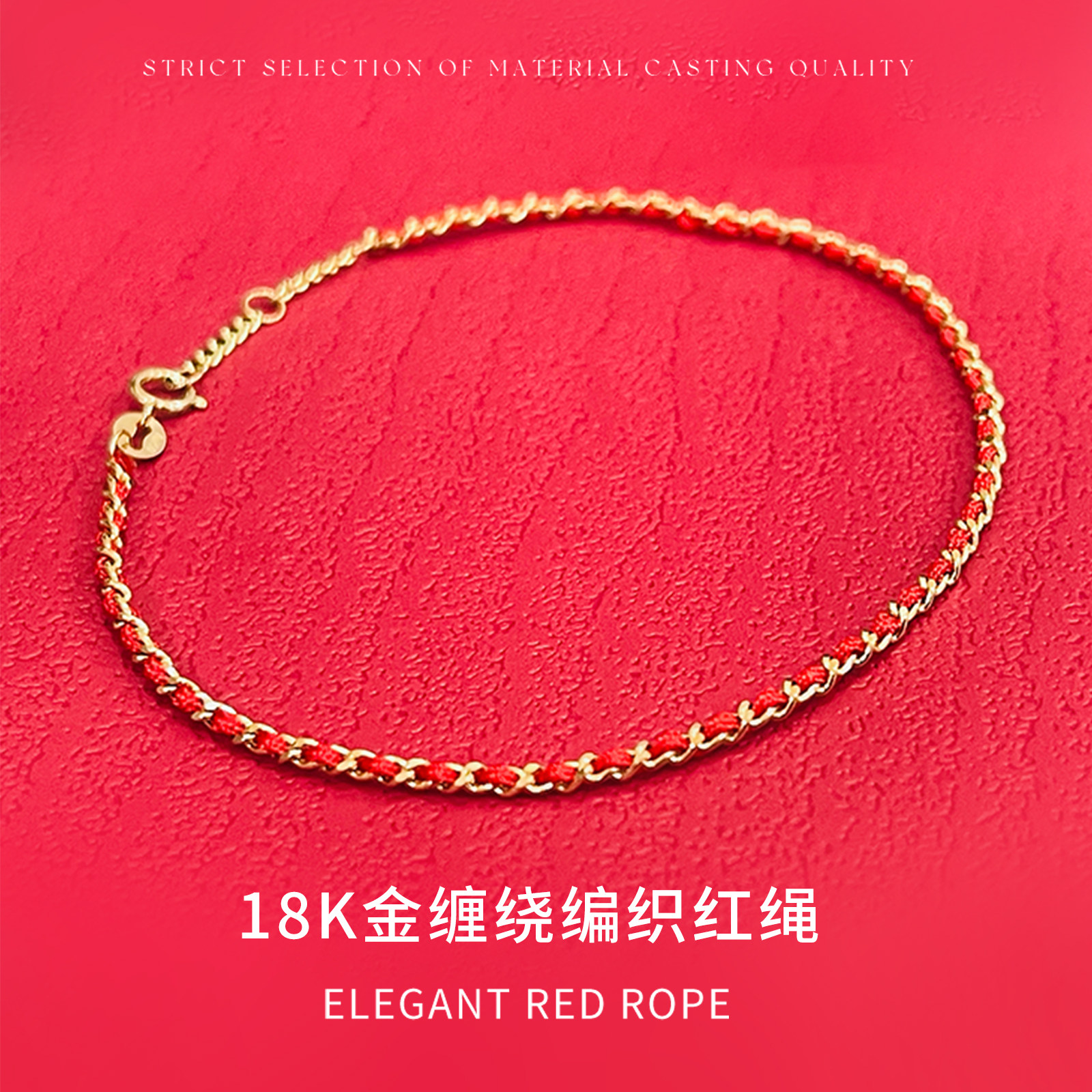 📚 臻怡18K金侧身链编织红绳细蜡线编织而成显白大气 优雅喜庆手绳