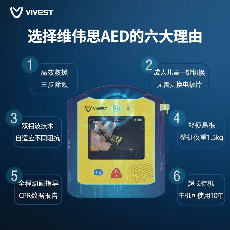 📚 Vivest维伟思A3 AED除颤仪便携式医用自动体外心脏急救除颤器车载