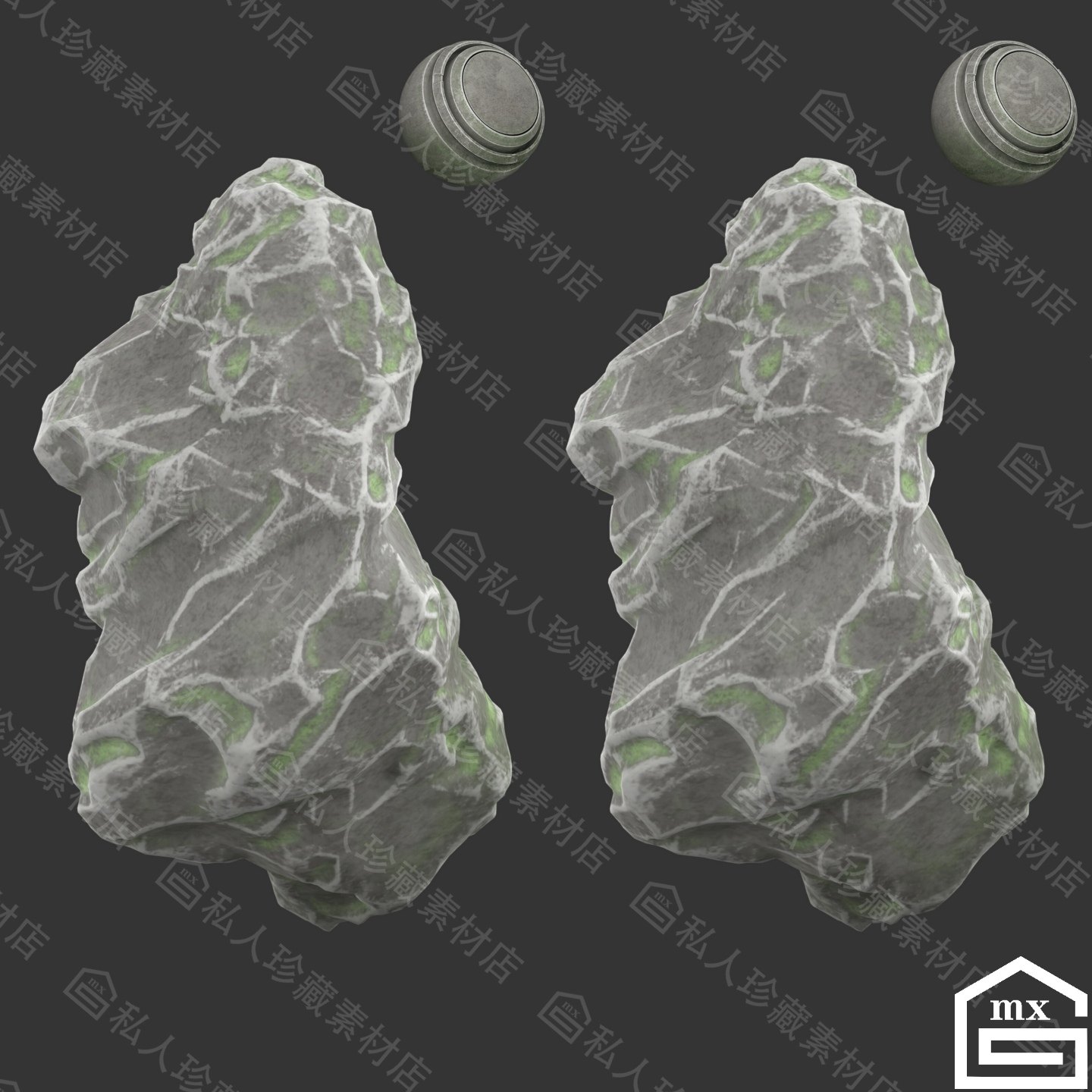 📚 Substance Painter风格化青苔藓石头材质SP岩石智能材质球spsm