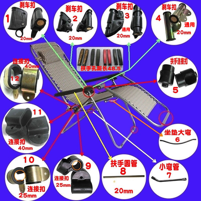 📚 藤椅沙滩午闲靠椅扶手连接件金属刹车扣折叠躺椅配件大全锁扣圆管