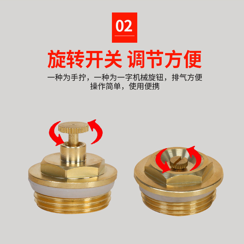 📚 暖气片纯铜排气阀跑风丝堵4分6分1寸手拧放气阀手动排污
