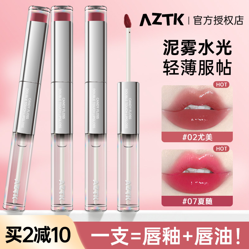 📚 AZTK双头唇釉哑光口红07不易沾杯02水光镜面唇蜜泥护唇油唇彩学生