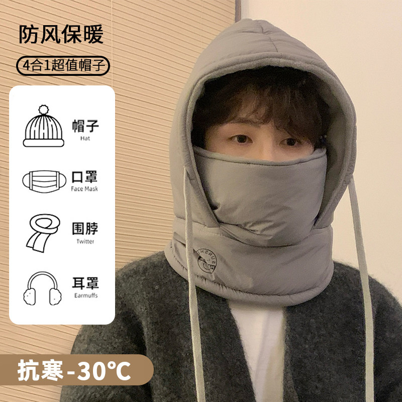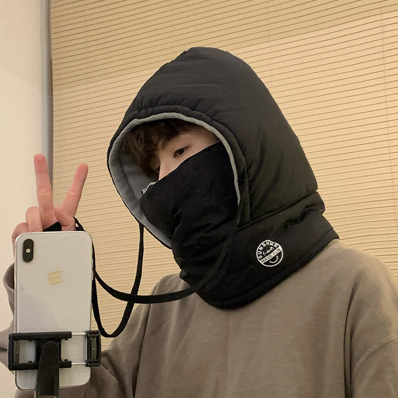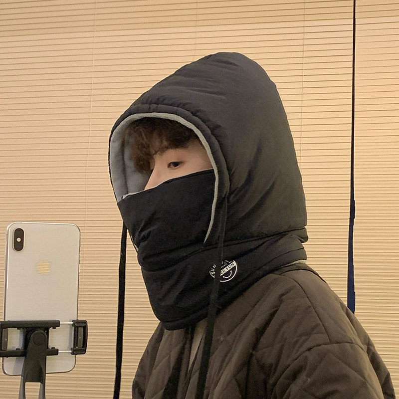 📚 骑行保暖帽防寒面罩帽子男款冬季防风电动车头套骑车棉帽一体围脖