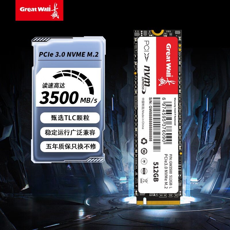 📚 长城固态硬盘M.2接口NVMe协议512GB/1TB台式机笔记本缓存高速硬盘