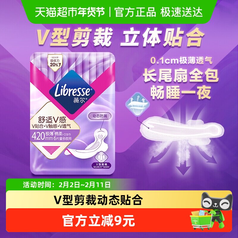🎁如果你也是需要深度睡眠、追求舒适度的宝贝们,我真心推荐这款【优于新国标】Libresse薇尔舒适V感夜用卫生巾。而且,现在购买还有优惠哦!快来试试吧!