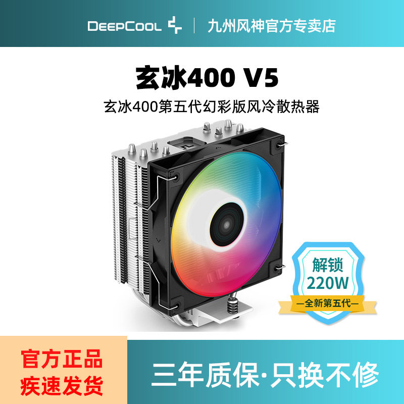 📚 九州风神玄冰400幻彩V5CPU散热器铜管i7多平台智能温控风扇AG400
