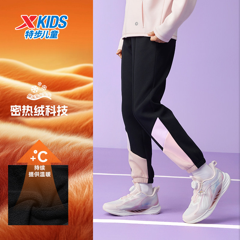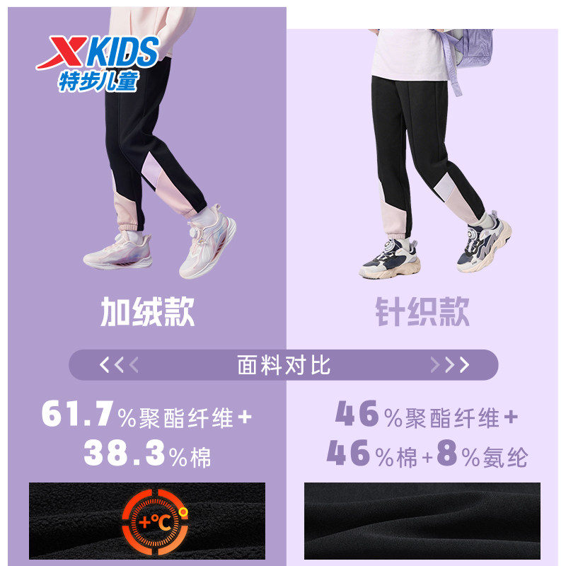 🎉【新品爆款来袭】特步童装女童拼接长裤,秋冬款加绒大童卫裤,券后价仅需89.9!💥