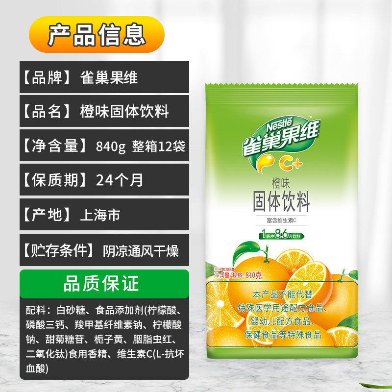 📚 雀巢果维C橙味固体饮料840g奶茶店冲饮橘子粉果珍浓缩橙C冲剂家用