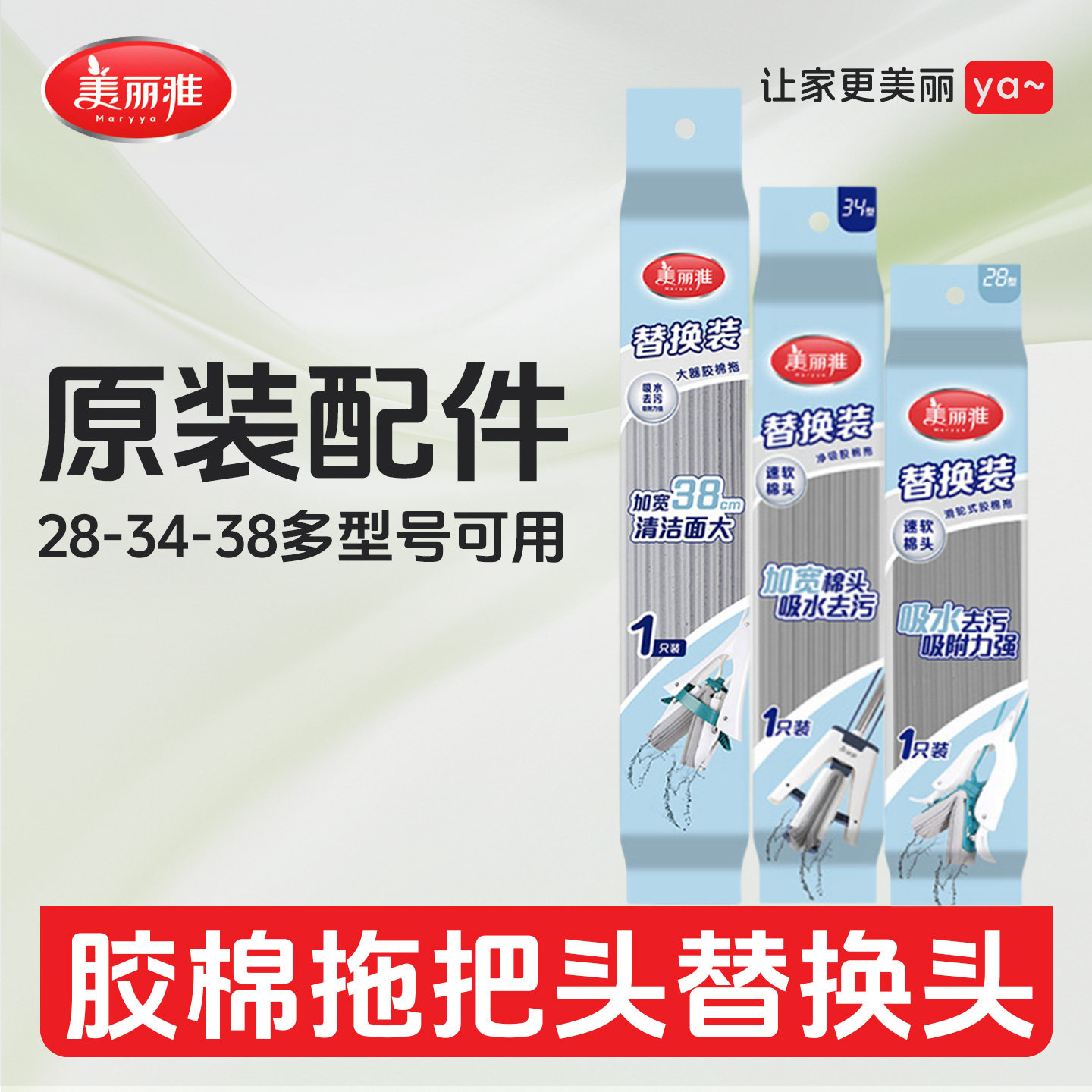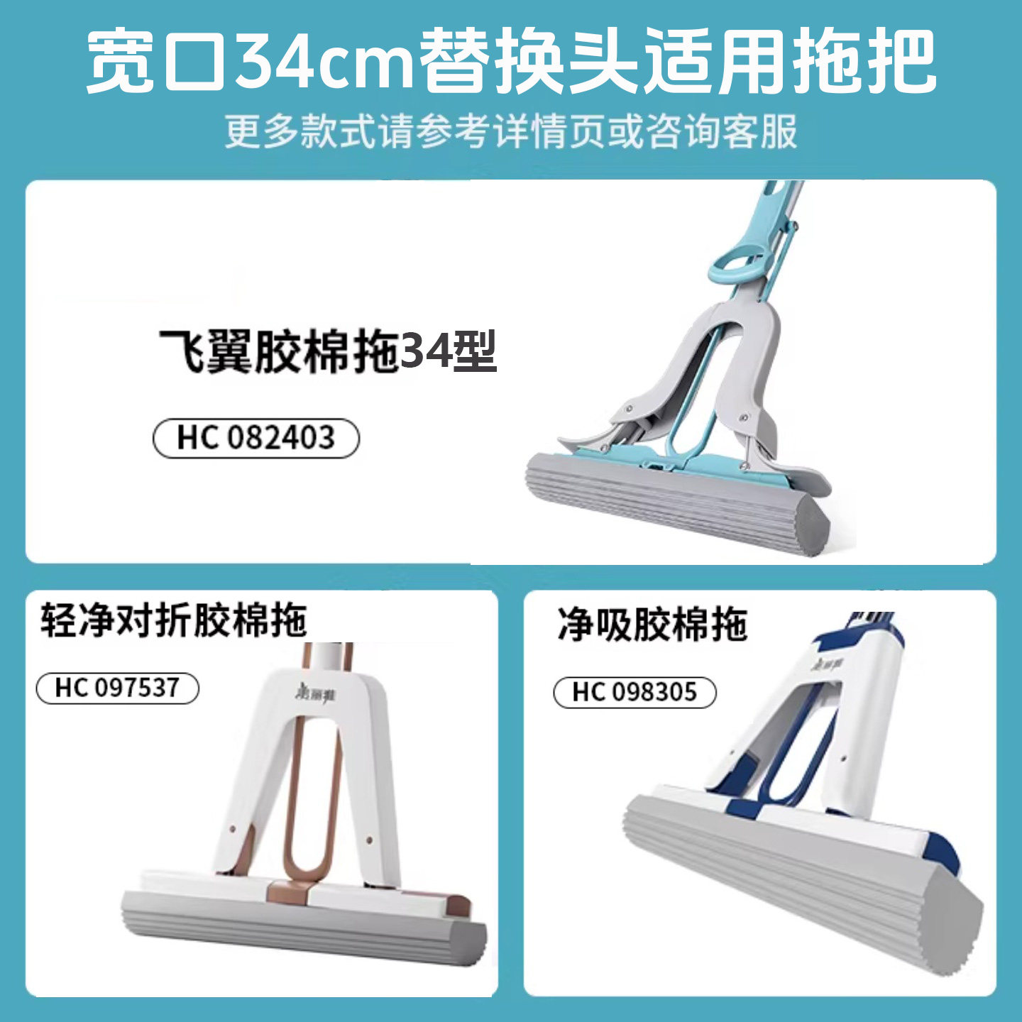 📚 美丽雅胶棉拖把替换头通用吸水海绵头原装28替换装配件38对折宽口