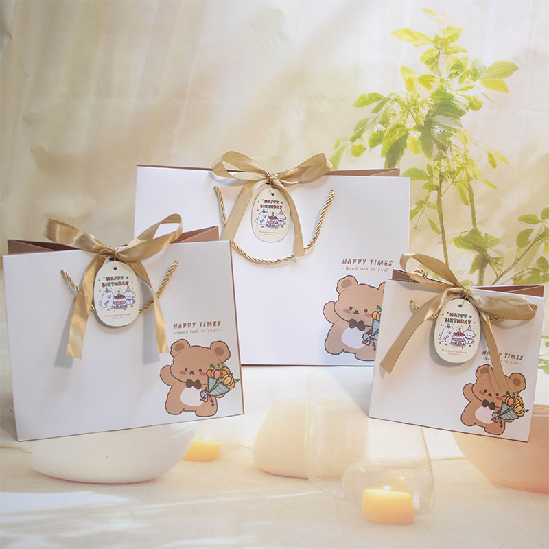 📚 圣诞节可爱小熊生日伴手礼满月精美包装袋小卡通糖果零食手提纸袋