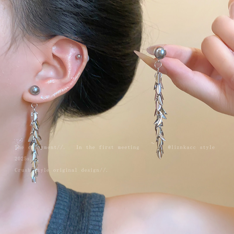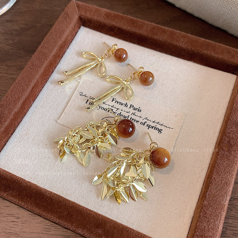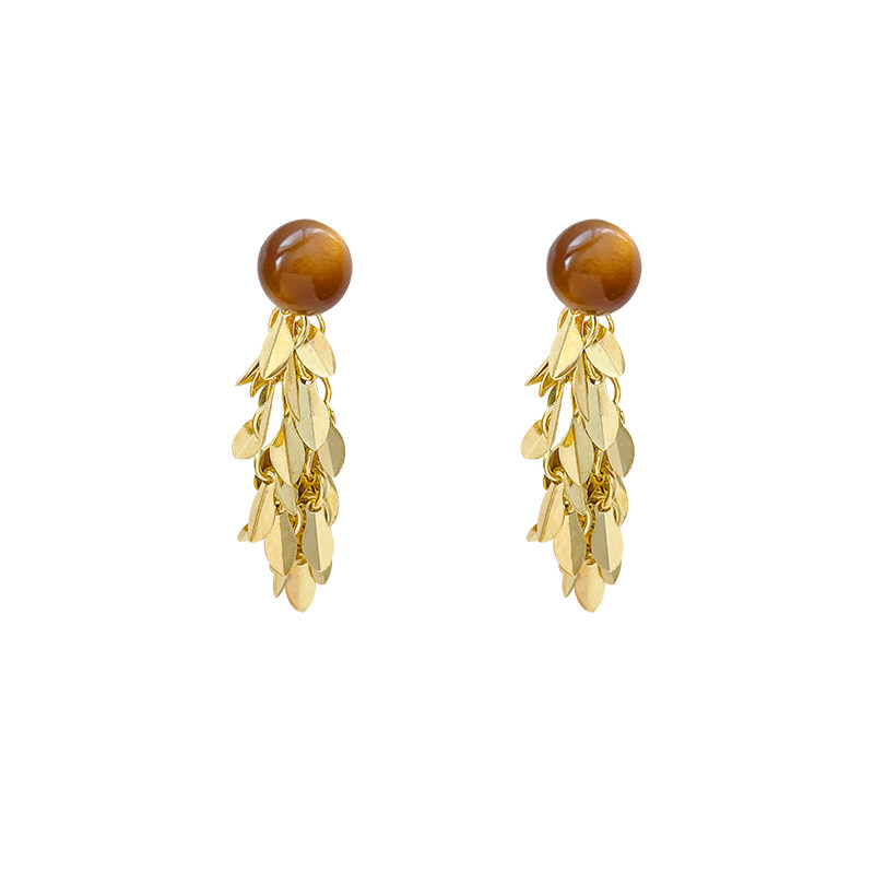 📚 金色羽翼~美拉德虎眼石麦穗流苏耳环女秋冬高级感耳钉方圆脸耳饰