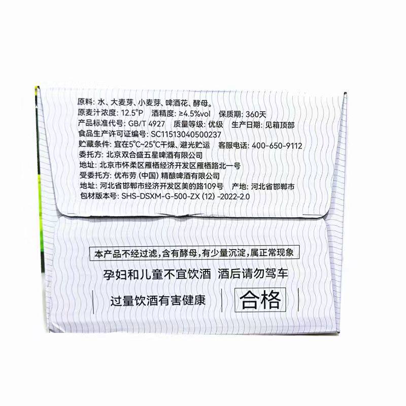 📚 北京双合盛精酿啤酒500ml*12罐小麦原浆12.5度浓醇啤酒 新日期