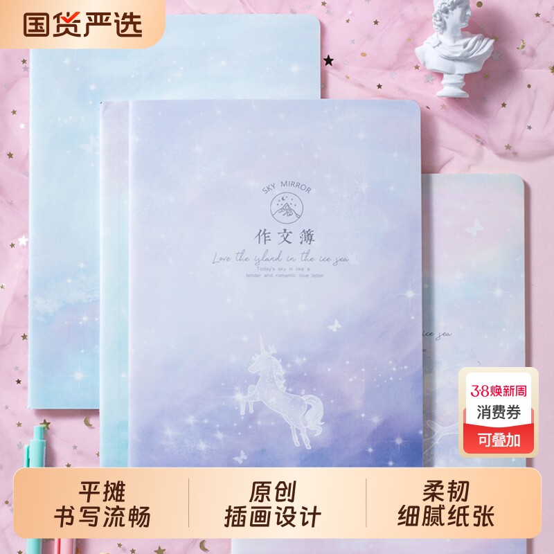 📚 四方伙伴作文本加厚300格大格255格作文簿16K方格清新大号3-6年级小学生作文本初中生高中生作业本厚作文薄