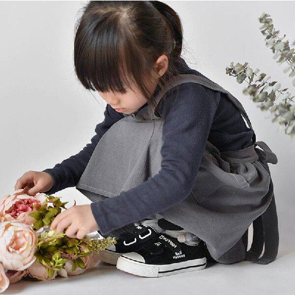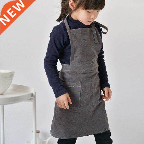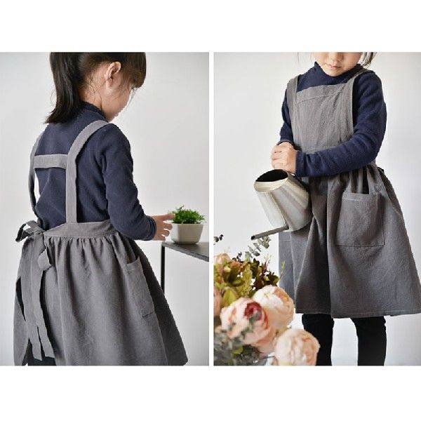 📚 Pure Cotton Linen Children Apron Multiple Uses Carbon Grey