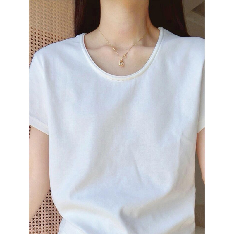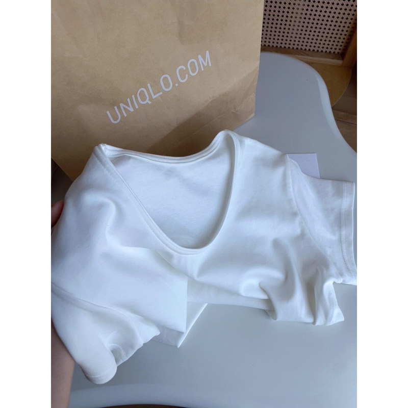 📚 u领白色纯棉设计感小众上衣女夏季2026新款慵懒风宽松正肩短袖t恤