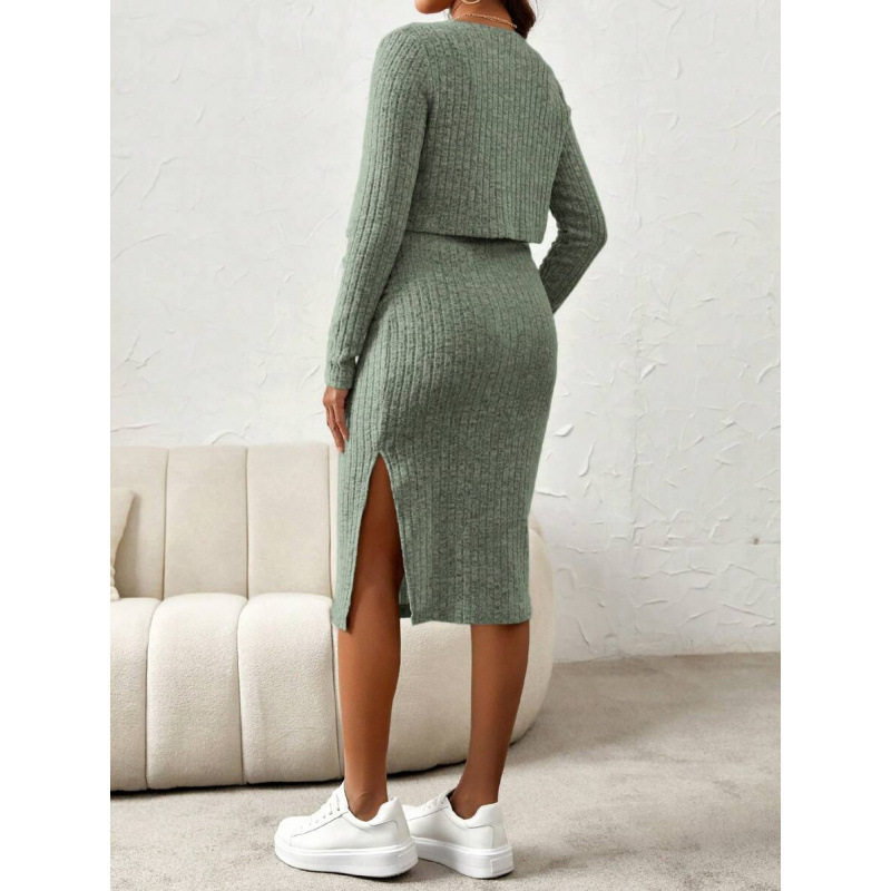 📚 J 65397 Ribbed Bodycon Dress Set 坑条包臀裙套装跨境外贸