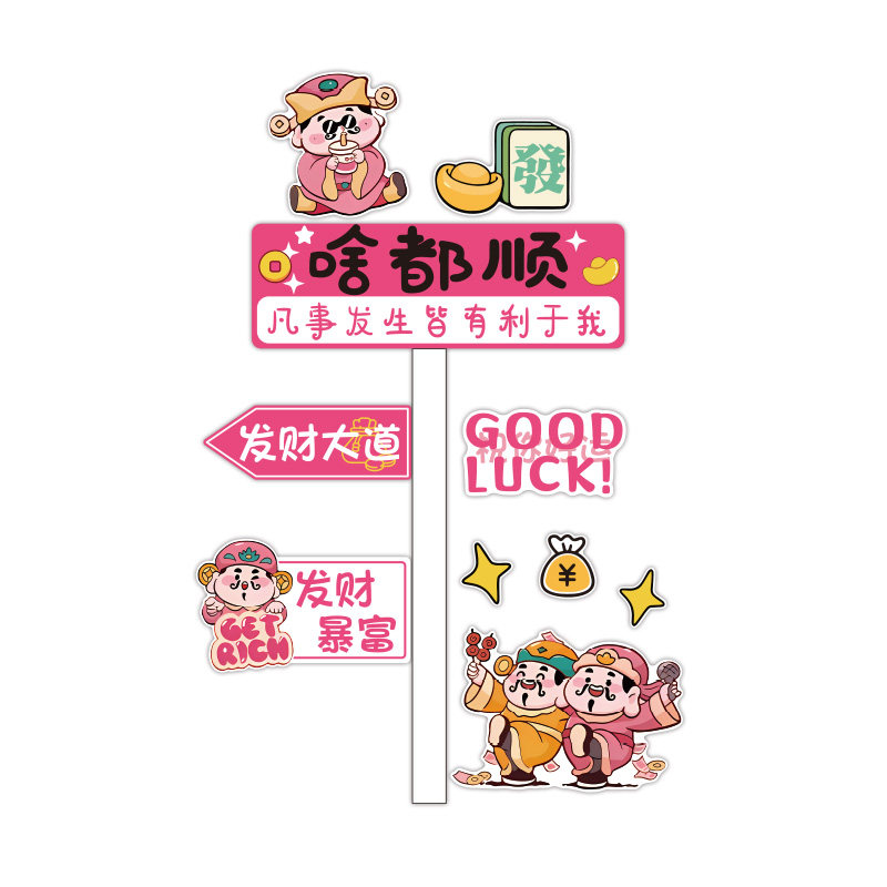 📚 网红财神爷装饰奶茶餐饮店铺打卡路牌拍照区造景墙面氛围布置贴纸