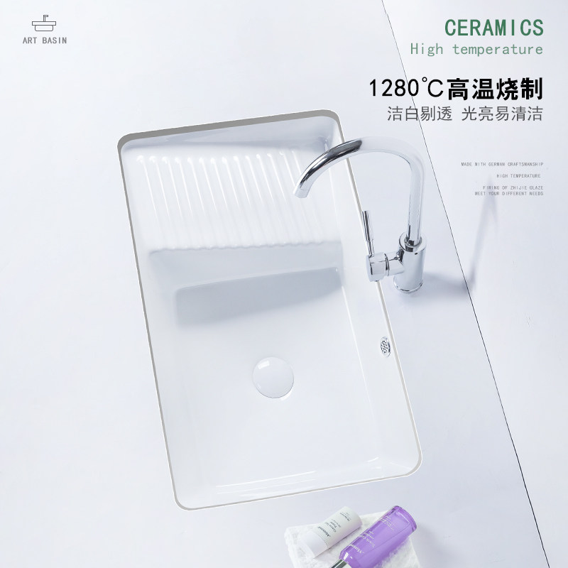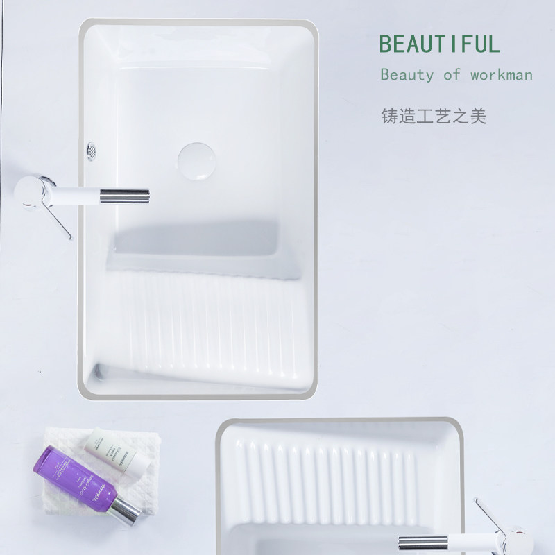 📚 陶瓷台下洗衣盆带搓板 套装单盆搓衣板盆家用阳台水槽加深洗衣盆