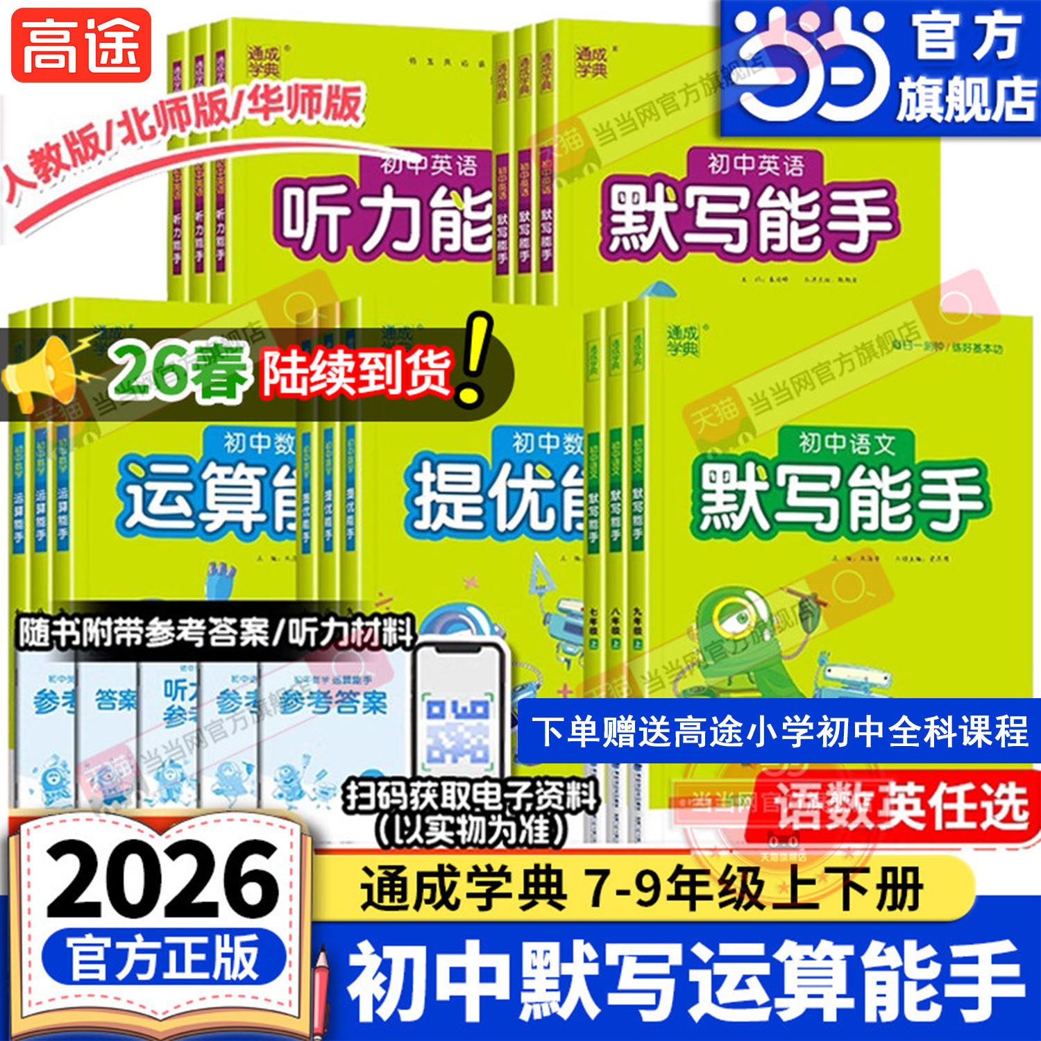 📚 当当网2026春/25秋初中运算能手默写能手听力提优七年级八中考九上册下语文数学英语苏教人教北师译林初一同步练习册口算计算